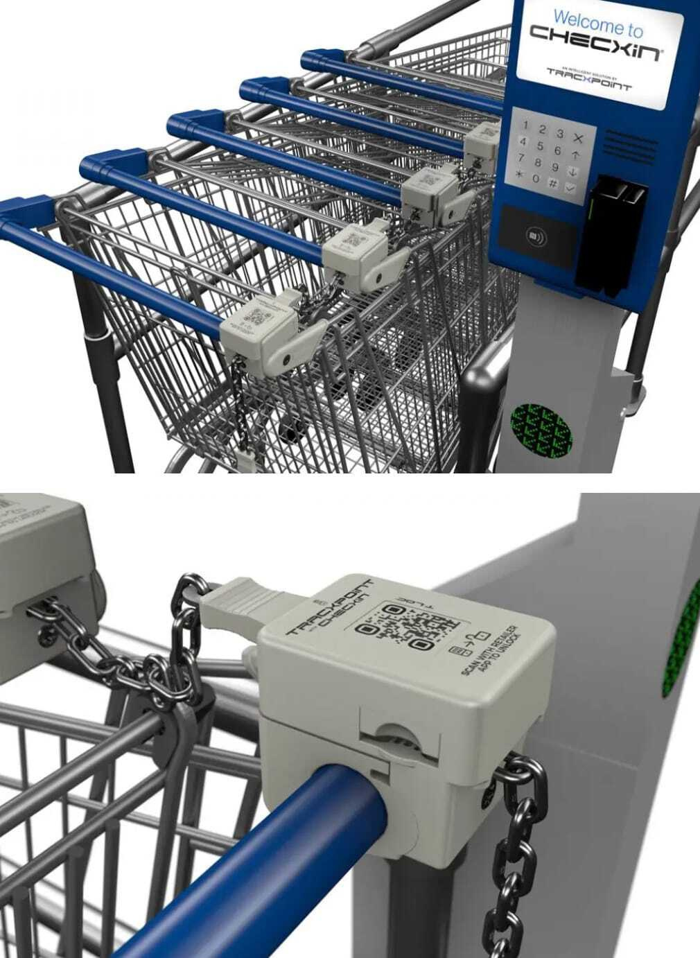 Otra de las soluciones del ecosistema Tracxpoint es la estación CHECXiN, un sistema de administración de carritos que alienta a los clientes a devolverlos, brindándoles puntos de lealtad, descuentos y otros incentivos personalizados.