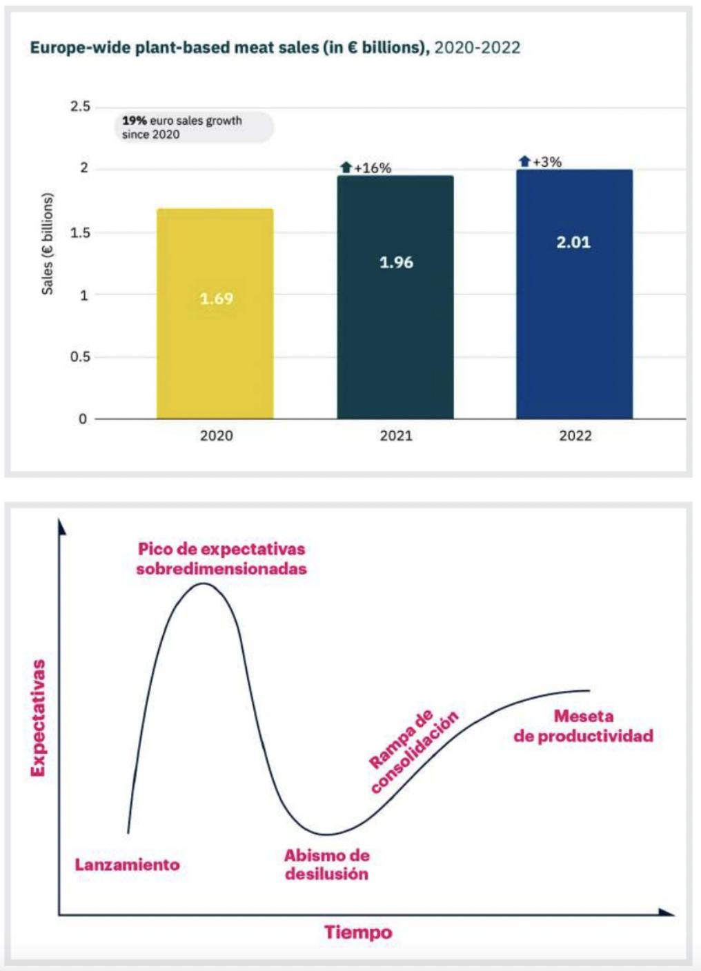 La industria plant-based ha sido impulsada por fuertes inyecciones de capital, que alcanzaron su pico histórico en 2021, con 5.000 millones de dólares y unas cifras de venta al alza que en ese año récord escalaban al 15%. Pero llegó 2022 y la situación comenzó a cambiar de sentido, o al menos a registrar ajustes importantes.