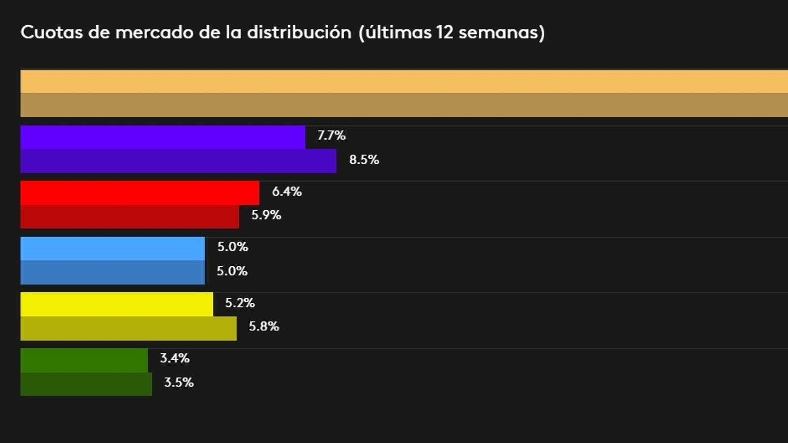 A sugerencia de un ilustre lector, incluyo el gráfico de Kantar donde puede verse la cuota de mercado de Carrefour desde la llegada de Rami, en mayo de 2019, hasta febrero de 2020 (situación pre-Covid). Por supuesto, no se refiere ni a ventas ni a resultados.