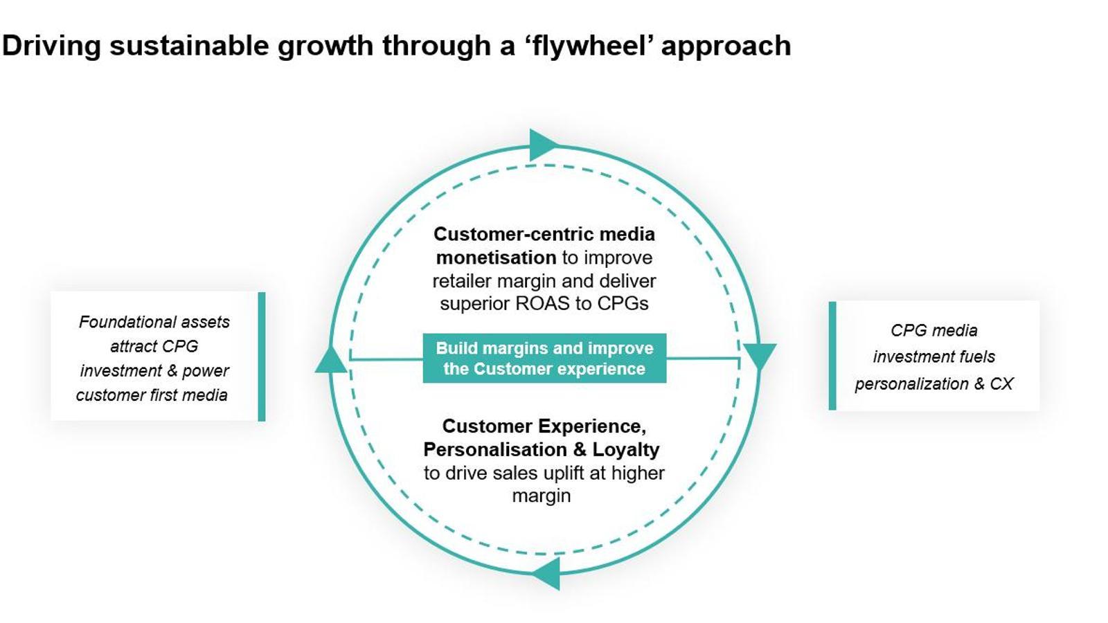 Cuanto mejor sea la experiencia del cliente, mayor será el aumento de las ventas para el minorista, mayor será el retorno de la inversión en publicidad para las marcas y, por lo tanto, mayor será la inversión en media de éstas. Esto genera mayores beneficios para los minoristas, lo que les permite reinvertir en la experiencia del cliente y, por tanto, el ciclo se repite. La mejora de la experiencia del cliente también puede impulsar una mayor fidelidad, lo que significa campañas promocionales más eficaces y una menor dependencia de los precios, ya que una personalización eficaz puede impulsar la percepción de los precios.