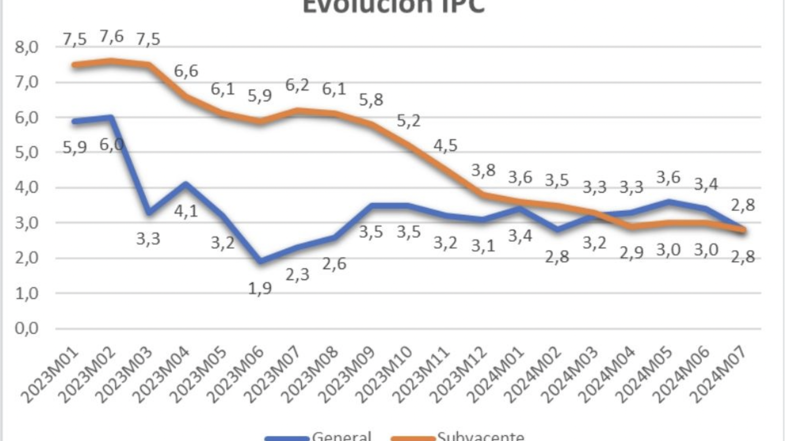 Pero es que, además, el IPC general se reduce seis décimas hasta el 2,8%, misma tasa que la inflación subyacente que se reduce dos décimas. En este caso la desaceleración de la inflación se debe al descenso de los precios de la electricidad, a la bajada de los precios de la alimentación y a la menor subida del grupo de ocio y cultura.