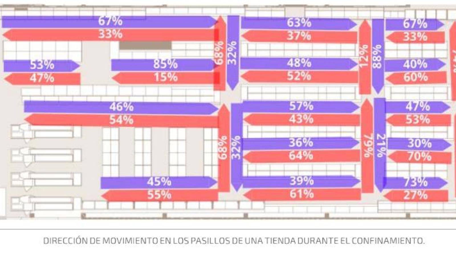 Medidas como establecer dirección única para ciertos pasillos han resultado poco efectivas, pues los shoppers han seguido haciendo un uso prácticamente igual al que venían haciendo antes de la crisis