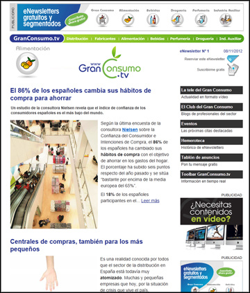 GranConsumo.tv dispone de dos soportes online: la web y los eNewsletters