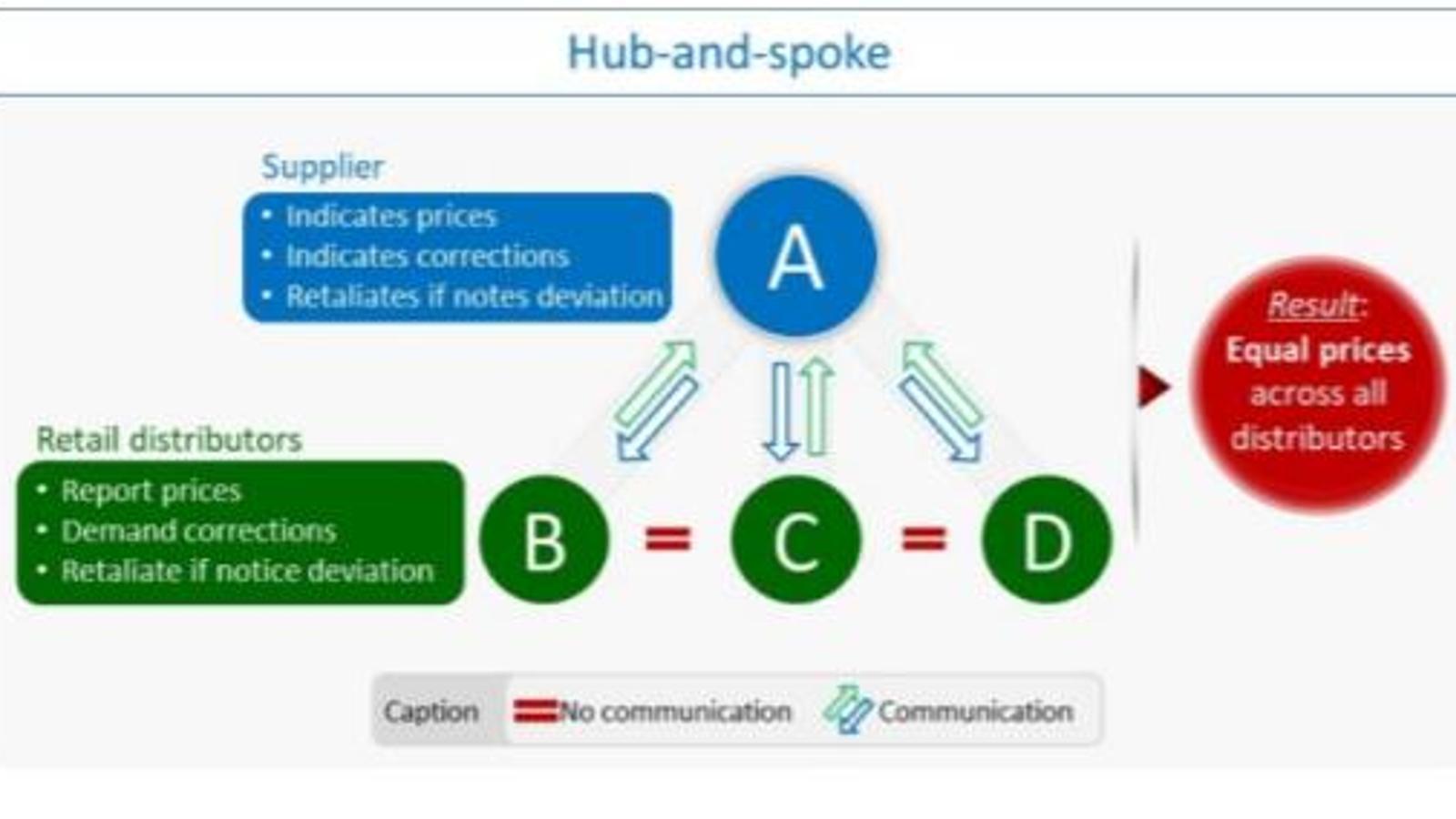 Como dice la autoridad lusa, el acuerdo tipo hub & spoke equivale a un cartel en el que los distribuidores utilizan los contactos con el proveedor para asegurar, a través de este último, que todos ellos aplican las mismas subidas de precios, evitando así tener un contacto directo entre ellos.