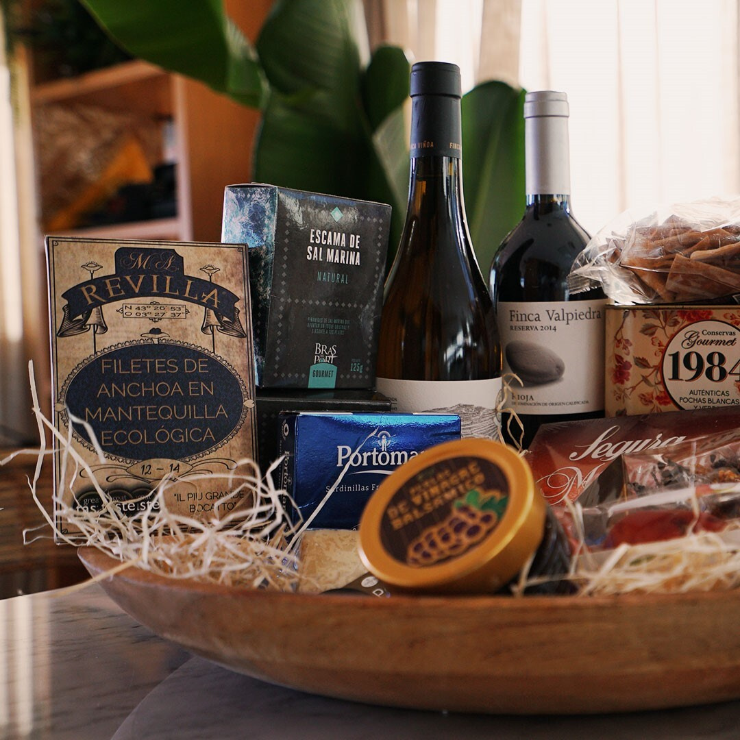 Asimismo, el proyecto cuenta con una cata virtual a través de Delicias de Aquí TV explicando los puntos fuertes y maridajes para conocer mejor los productos que presenta Goyo. Yo aprendí mucho sobre lo que contenía mi cesta. Había productos muy interesantes de diferentes sitios de España. Por ejemplo, un tomate morado maravilloso de Hortícola Guadalfeo (Granada), escamas de sal marina de Bras del Port (Alicante), un vino Finca Viñoa de Rías Baixas y un Rioja de Finca Valpiedra Reserva 2014, unas anchoas de Santoña o un queso curado de cabra que había ganado la medalla de oro World Cheese Awards Londres 2017-18. Se añadían otras delicias como anchoas, aceite, conservas naturales de pochas blancas y verdes ,y perlas de vinagre balsámico.