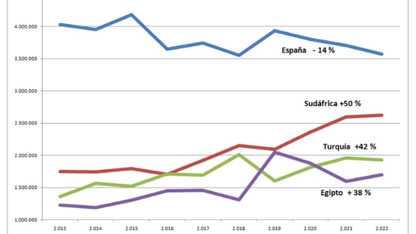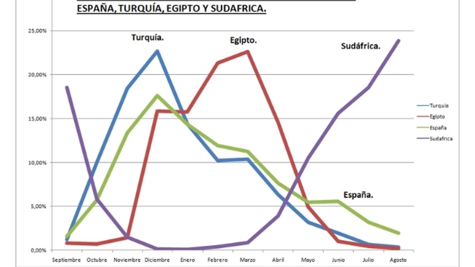 Solo España ha bajado mientras que Sudáfrica, Turquía y Egipto han crecido.
