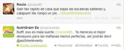 Os dejo un ejemplo de estas conversaciones que acabo de ver en el perfil de Twitter de @NutriGrainEs