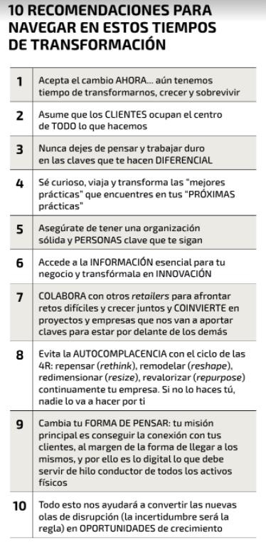 ¿Qué empresas han despegado con esta revolución en retail? Las que utilizan un modelo directo de llegada al mercado (DTC – Direct to Consumer). Marcas nativas digitales como Warby Parker, Casper, Bonobos, Allbirds, Away, ... y otras en España y otros países que no paran de crecer. ¿Qué es lo que me gusta de su modelo? Su forma de pensar: entienden que su misión principal, desde el minuto uno, es la conexión con sus clientes, al mar- gen de su forma de llegar al mismo, digital o física. Ello las hace tremendamente flexibles y resilientes en una situación como la que estamos viviendo.