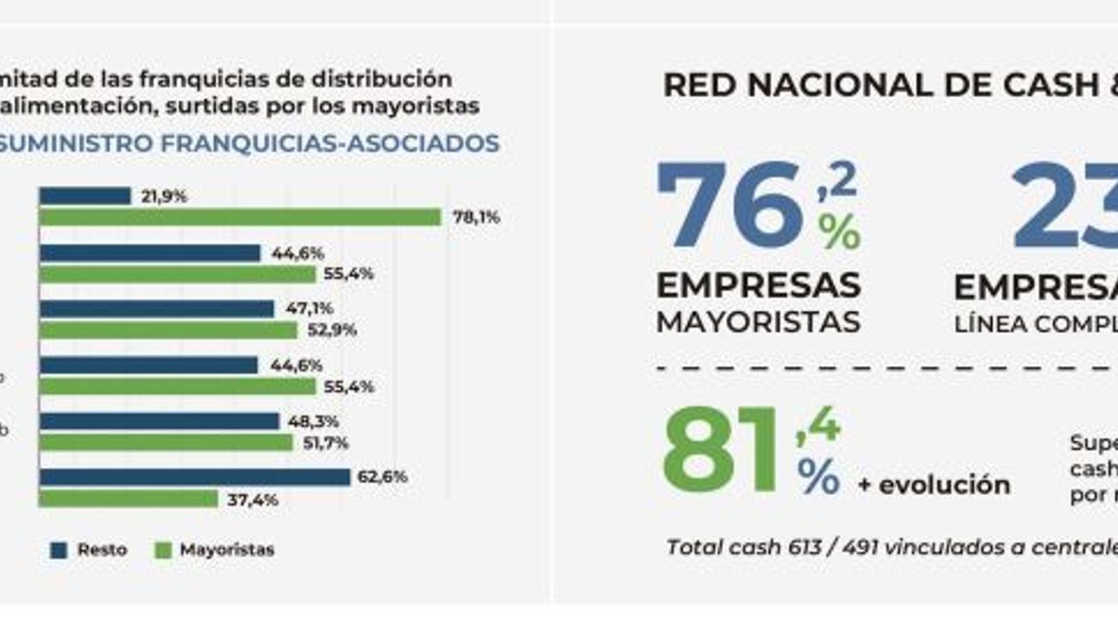 El estudio recoge que, de las 177 empresas con actividad mayorista, 69 se centran en la explotación del cash&carry, combinada en muchos casos con el mayorismo tradicional; 37 tienen línea de cash como complemento a sus establecimientos minoristas propios, pero no cuentan con franquicias o socios; mientras que 26 gestionan líneas propias de cash y detallistas, y también suministran a tiendas vinculadas.