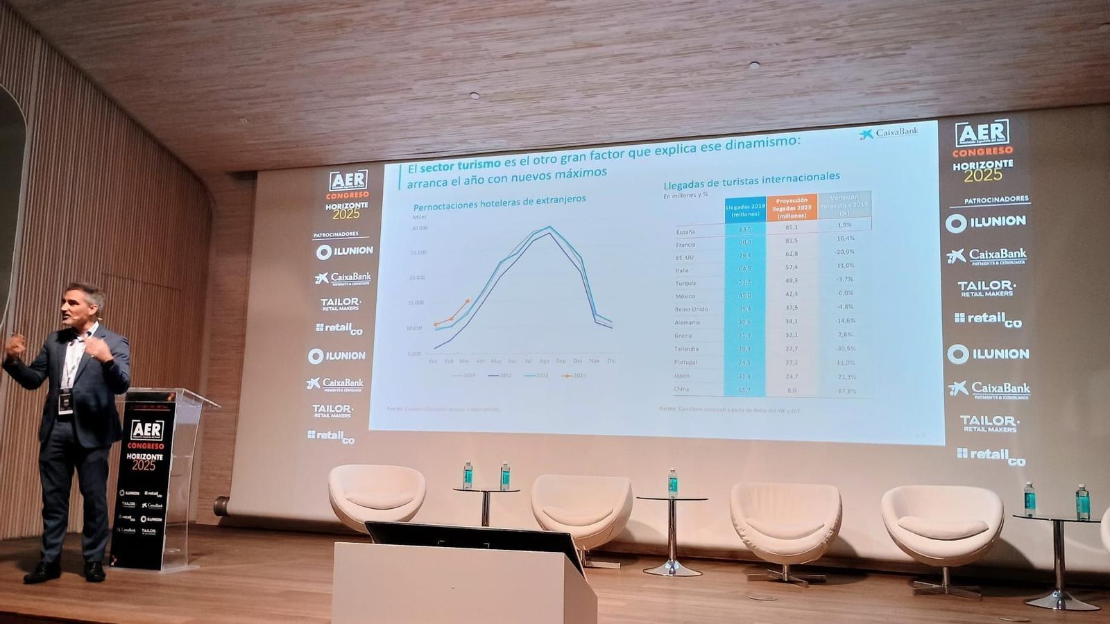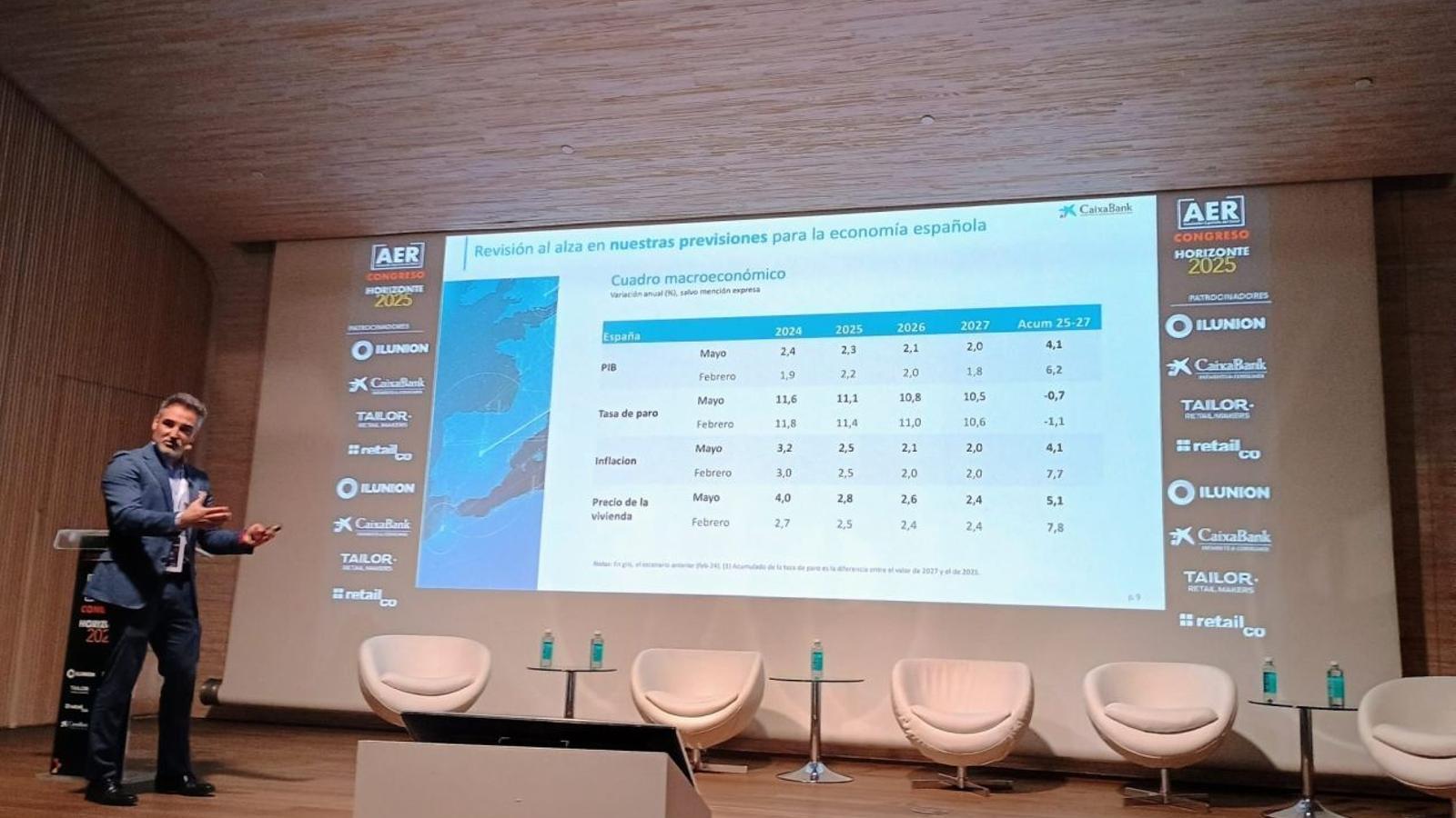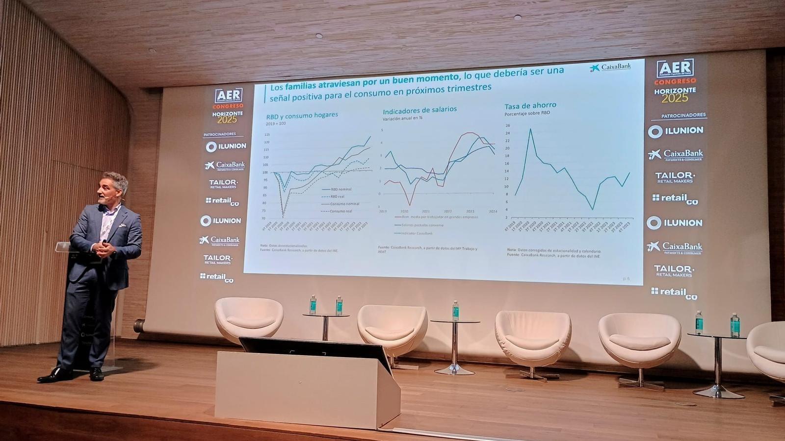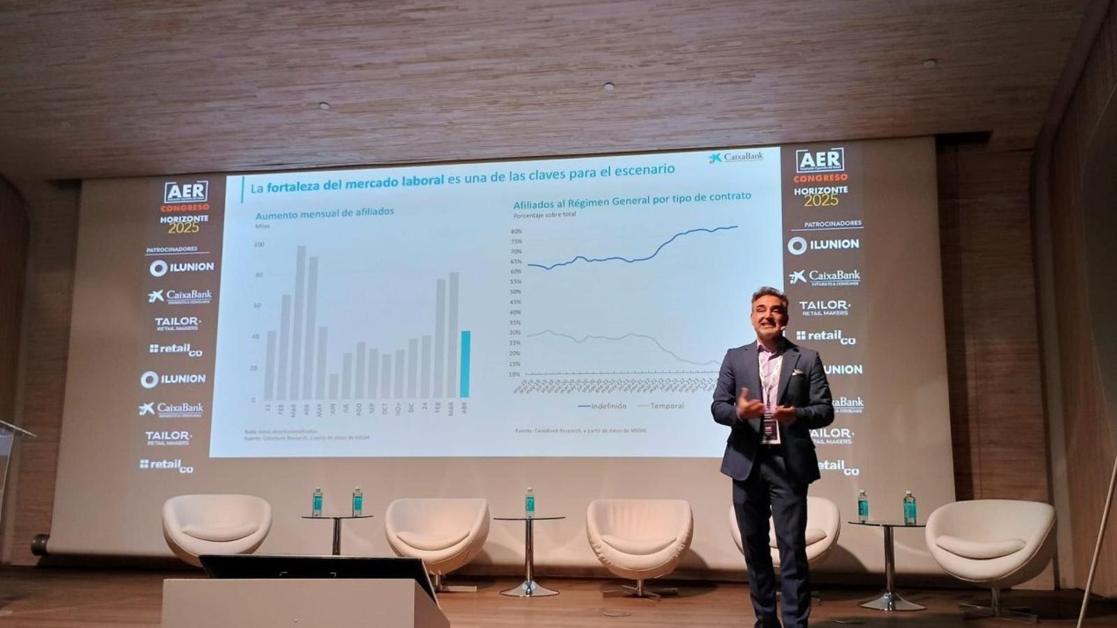 "El consumo puede ser, por fin, esa variable que se reactive en el medio plazo y sea el motor de crecimiento para la economía española". Este es el mensaje de confianza que Pedro Álvarez Ondina, economista y analista macroeconómico en CaixaBank Research, transmitió durante su participación en el Congreso Horizonte 2025, organizado por la Asociación Española del Retail (AER) para debatir y reflexionar acerca del futuro y que tuvo lugar este miércoles, 12 de junio, en Madrid.