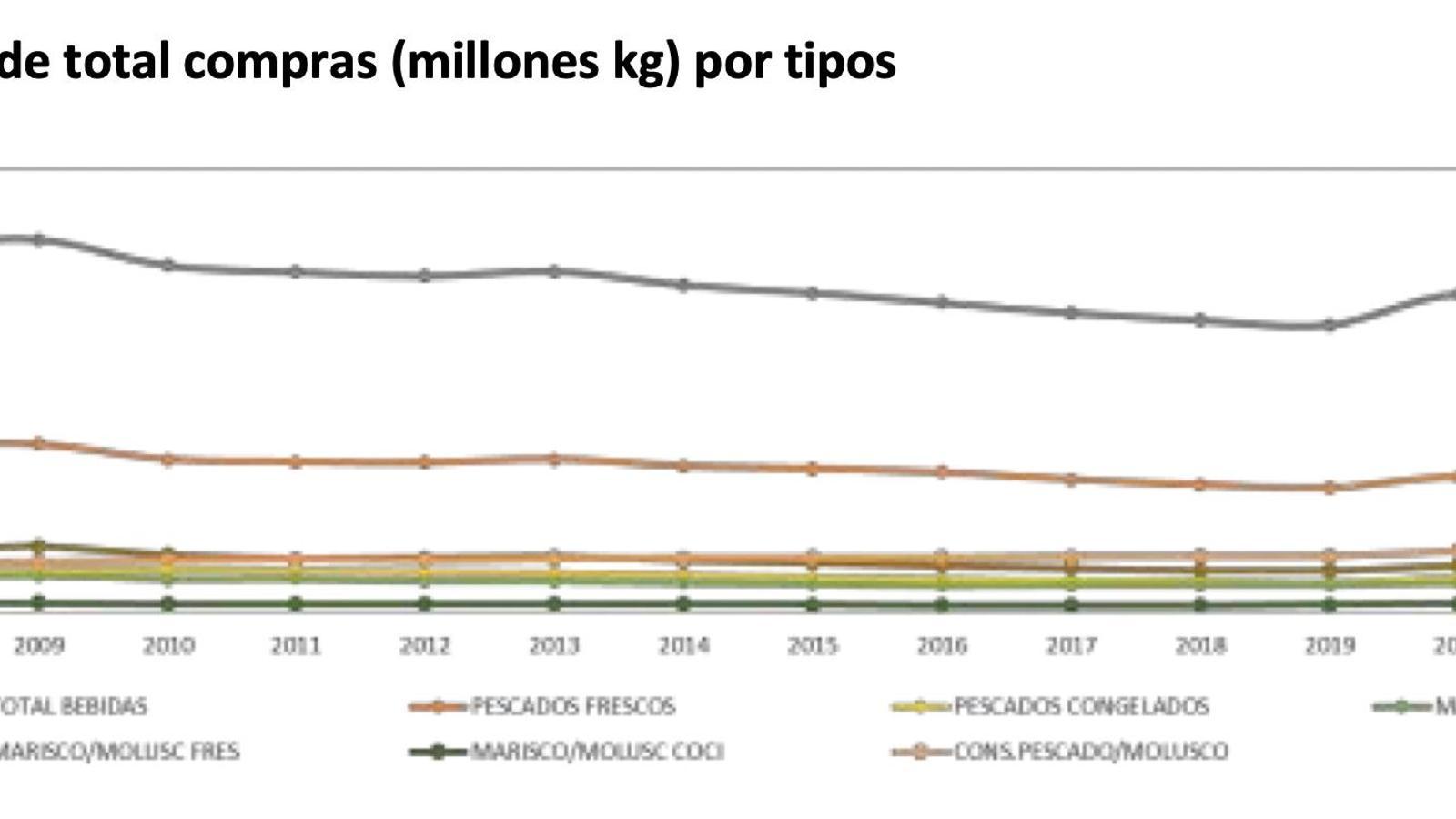 En cuanto a los productos de la pesca (que incluye pescados frescos, congelados y mariscos, entre otros), el consumo per cápita de los mismos es de 19,9 kilos por persona, el 15,5% menos con respecto a lo ingerido un año antes. El gasto per cápita también disminuye el 9,4%.