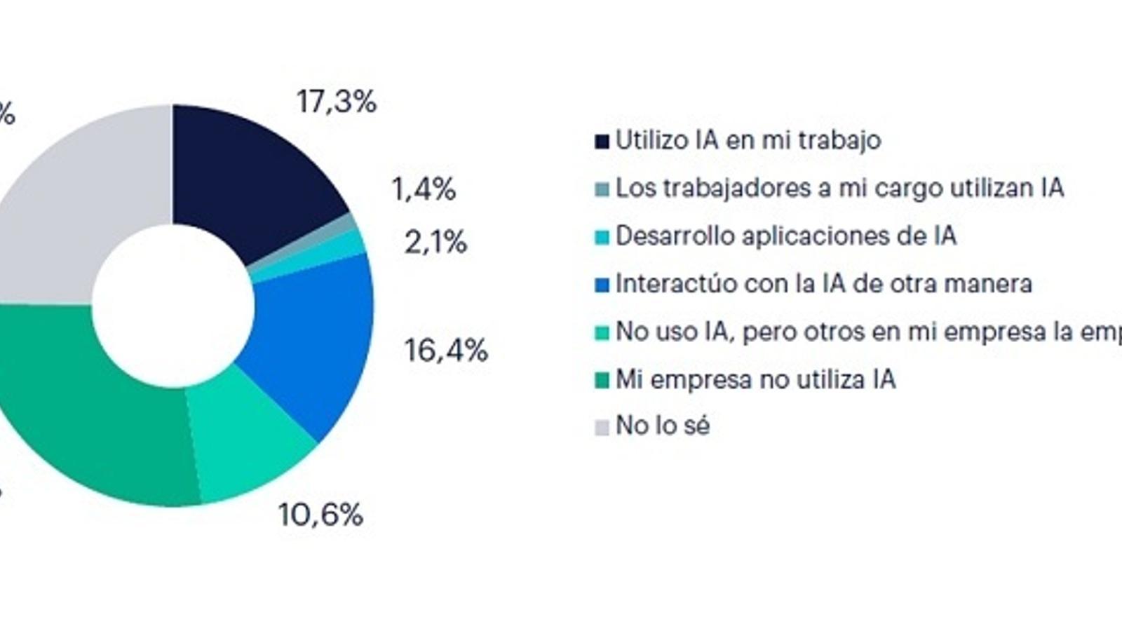 A pesar de todo, los profesionales que utilizan de alguna forma la IA son aún minoritarios. Solo el 17,3% de los empleados utiliza la IA en el trabajo, según la encuesta, que también recoge que más de la mitad de las respuestas se dividen entre aquellos que aseguran que su empresa no utiliza la IA (27,5%) o aquellos que lo ignoran (24,8%).