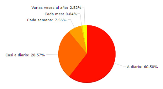 Por el lado de los más fieles al papel, sólo el 45% afirma leerlas al menos una vez al mes, frente al 89% que asegura leer "a diario" (60,5%) o "casi a diario" (28,6%) noticias del sector a través de Internet. Por lo tanto, los medios digitales cuentan con el doble de audiencia fidelizada (y "diariamente", frente al seguimiento "mensual" de las revistas en papel).