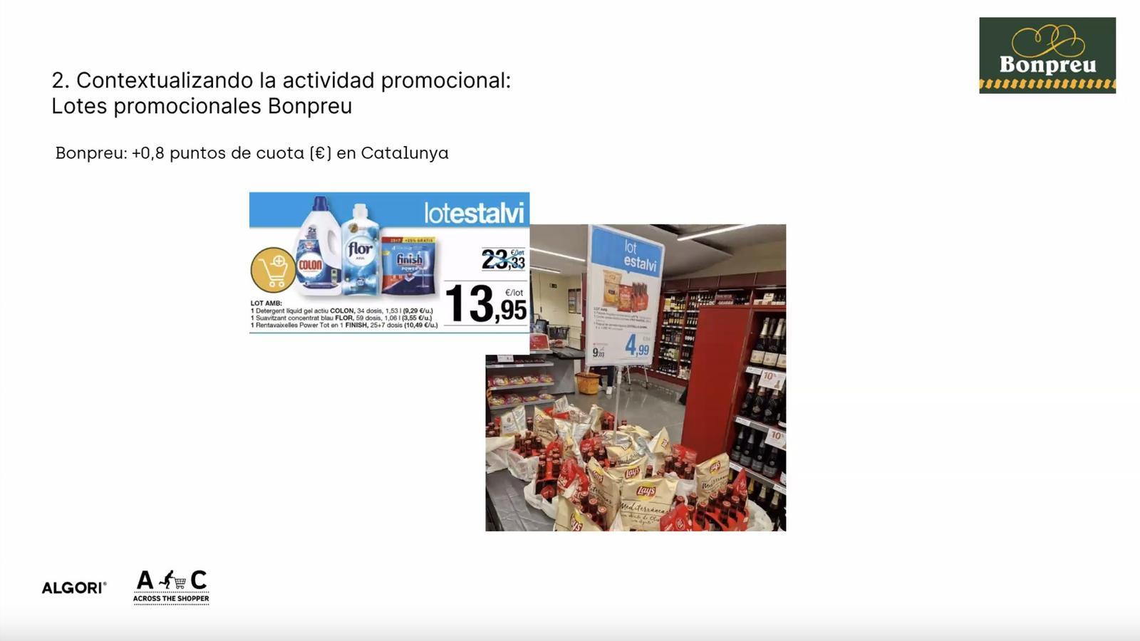 BonPreu es otra de las enseñas que está creciendo en cuota de mercado (0,8% en Cataluña) gracias, en buena medida, a su actividad promocional. En colaboración con los fabricantes, ha aglutinado misiones de compra en formatos que facilitan la compra y generan tráfico; por ejemplo, en el caso de productos de droguería, patatas y cerveza, etc.