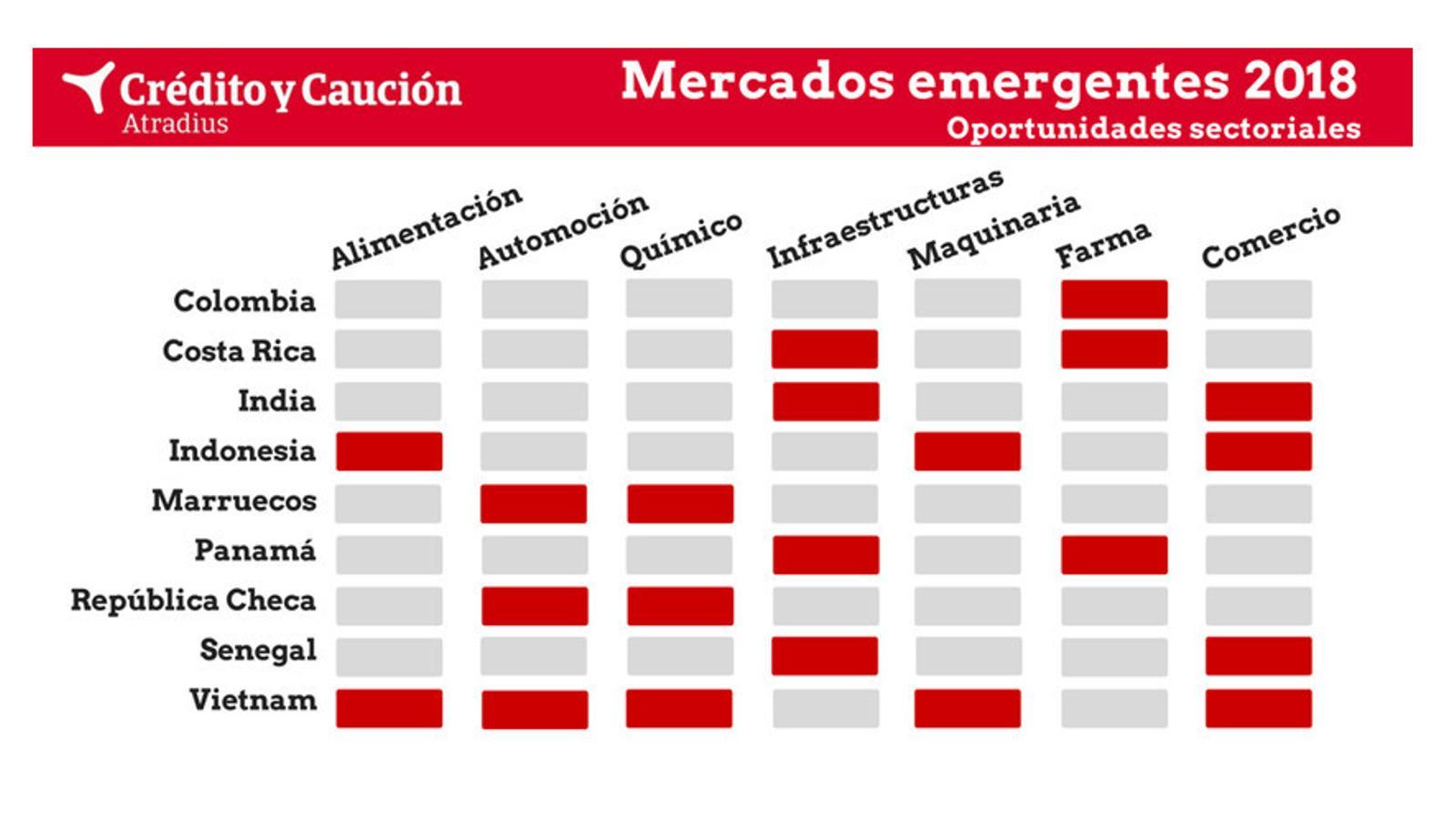 Además, considera que todos los mercados emergentes no serán igual de sensibles a un cambio en la evolución de Estados Unidos o China. El informe de la aseguradora identifica, junto a los dos países asiáticos citados, otros siete que considera menos vulnerables a los grandes riesgos a lo largo de este año. Se trata de Colombia, Costa Rica, República Checa, India, Marruecos, Panamá y Senegal.