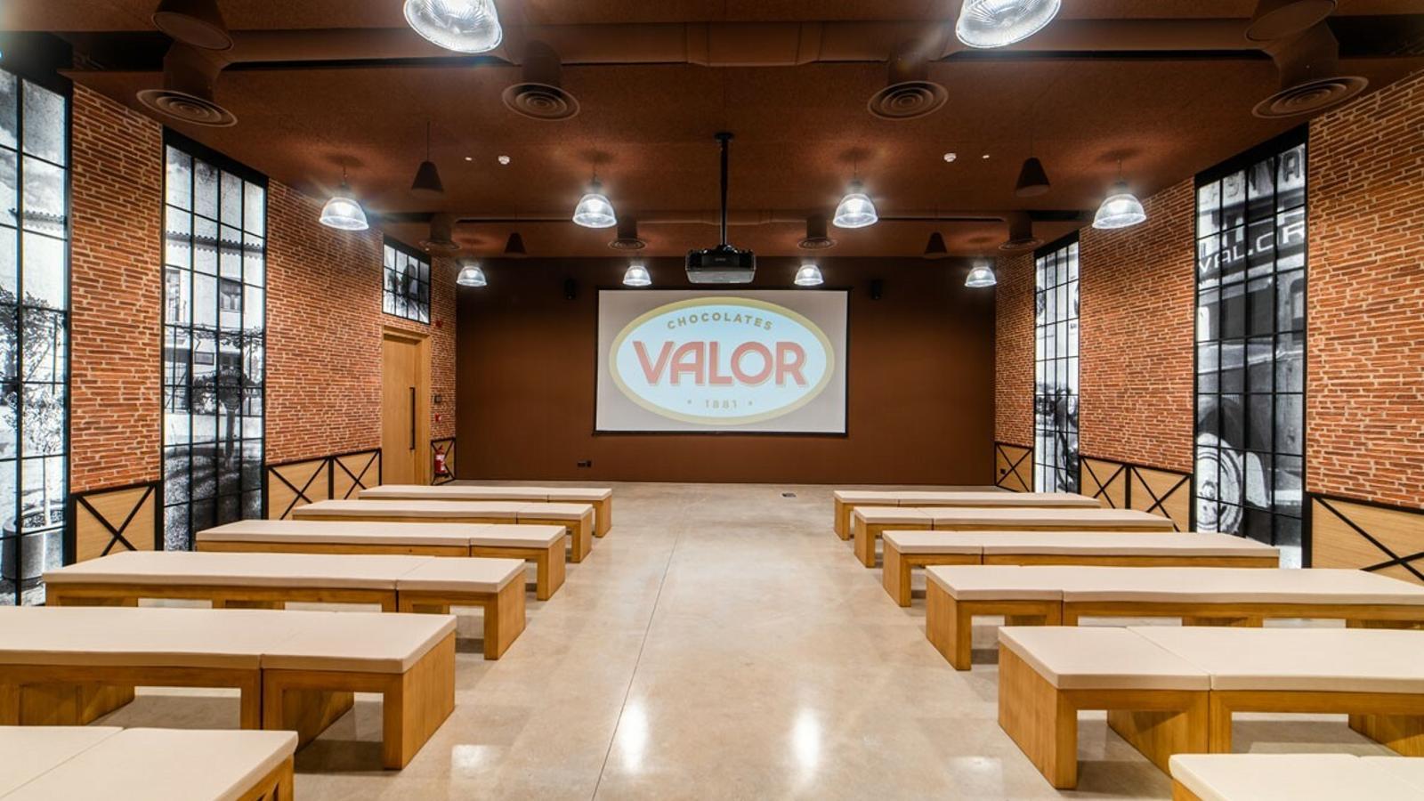 Por otro lado, la segunda sala se convierte en un pequeño cine donde disfrutar de la historia de Chocolates Valor, a través de un recorrido por los orígenes e hitos de la marca fundada en 1881. Un trayecto que se realiza tras pasar entre las sacas de cacao y cajas de transporte de un antiguo almacén, que dan la bienvenida a este espacio audiovisual. Al terminar la visita a estas estancias, el itinerario se completa con la entrada a la exposición de la antigua fábrica familiar, un recorrido por las actuales instalaciones de la marca y una degustación de chocolate en la exclusiva tienda Valor.