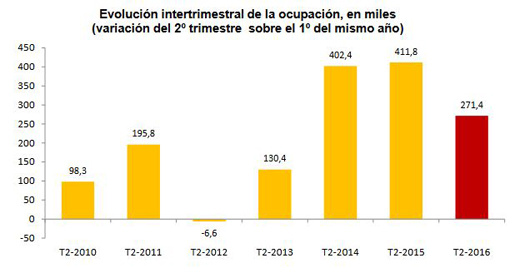 El descenso del paro en este segundo trimestre de 2016 es inferior a los logrados en los segundos trimestres de 2015 (-295.600 parados) y 2014 (-310.400). Sí supera el de 2013.