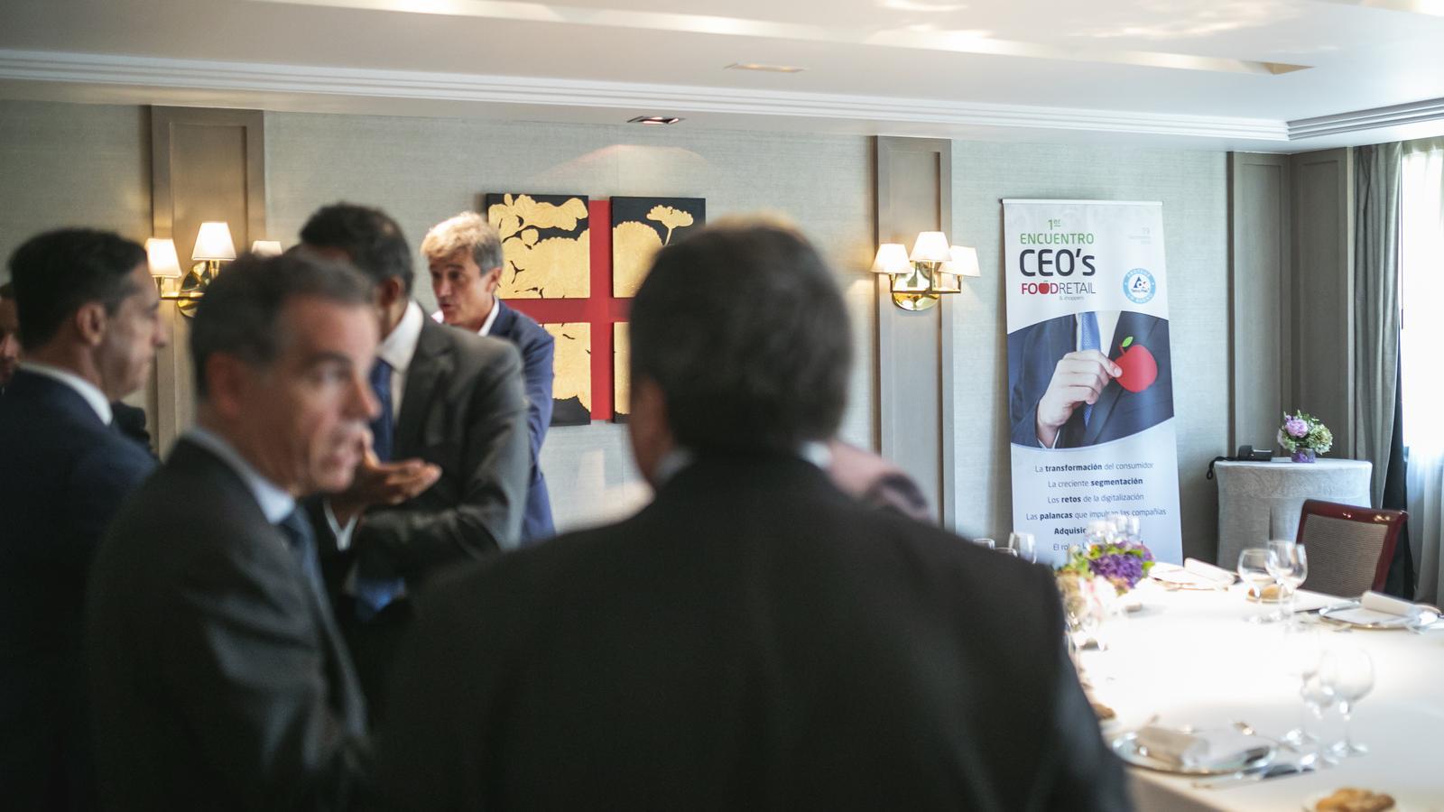 Precisamente Rami Baitiéh, Pedro Domínguez (Palacios Alimentación), Enric Ezquerra (Supermercados Sánchez Romero), José Ramón Fernández de Barrena (Uvesco), Rafael Juan (Vicky Foods), Juan Manuel Morales (Grupo IFA), Ramiro Ortiz (Tetra Pak Iberia), Narcis Roura (Pepsico), Paulo Soares (Campofrio Food Group) y José Armando Tellado (CAPSA) han sido los participantes del I Encuentro de CEO’s de FoodRetail & Shoppers, celebrado en el hotel Villa Magna de Madrid, con el patrocinio de Tetra Pak y moderado por Jean Marie Benaroya.