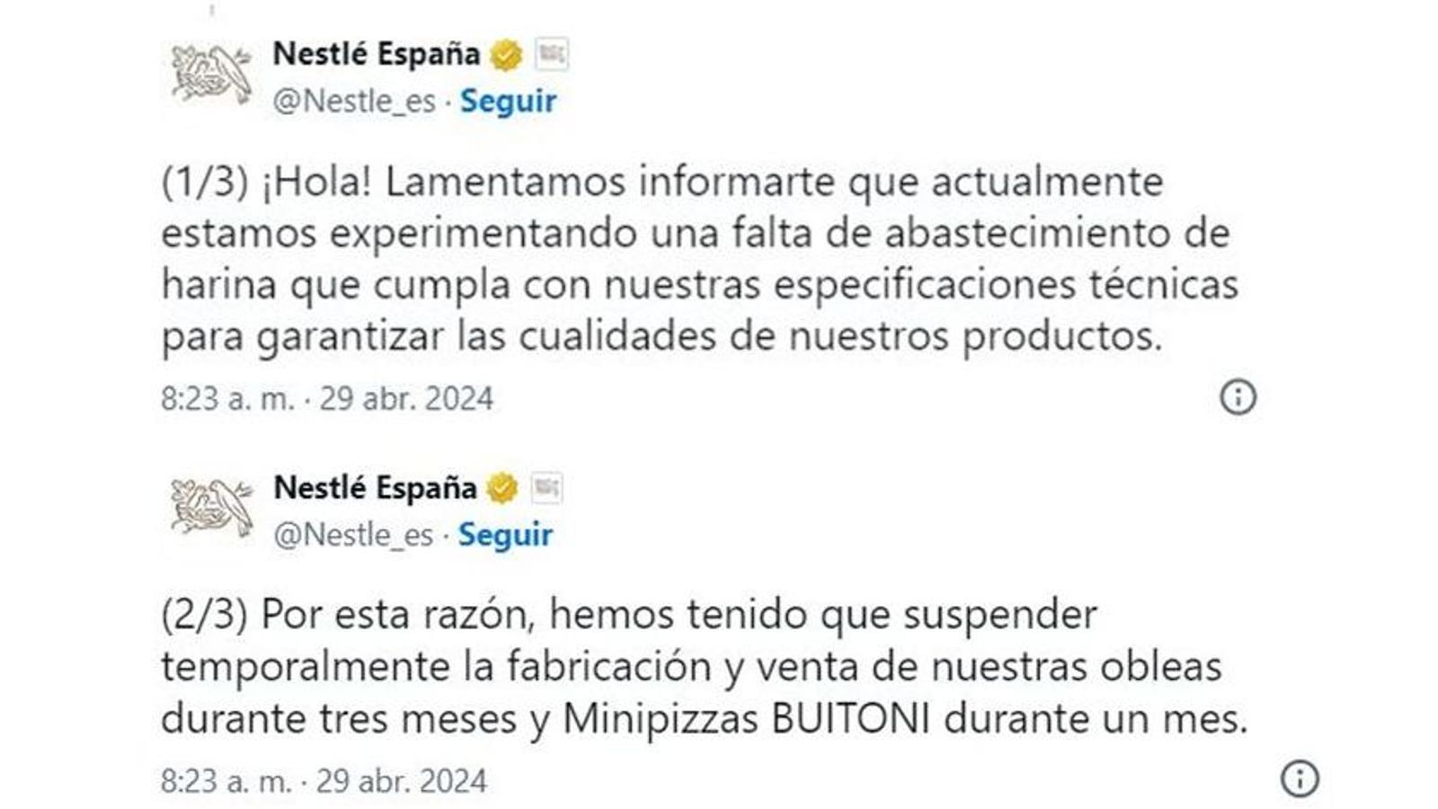 La decisión no deja de ser llamativa, primero porque estamos hablando de una multinacional como Nestlé; y segundo porque, por el momento, no parece que los problemas de abastecimiento de harina estén afectando al resto de fabricantes y firmas, que han mantenido su producción con normalidad, y de hecho siguen suministrando a los supermercados obleas y masas de similares características.