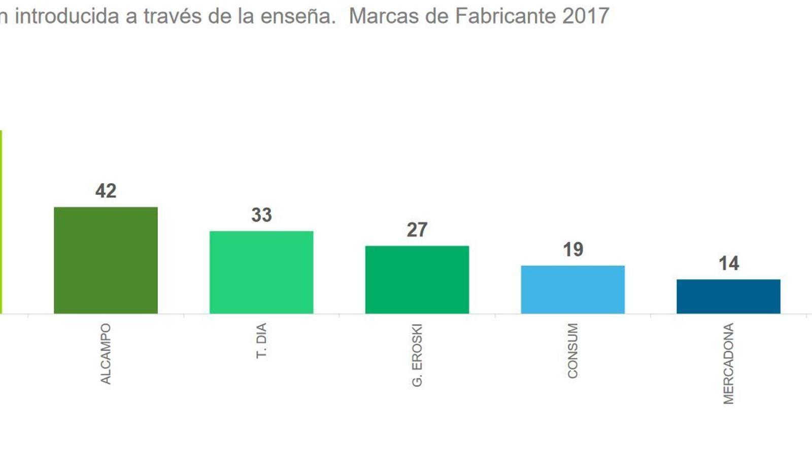 Desde 2014, Lidl solo ha introducido el 6,3% de las innovaciones de MDF. Mercadona, el 12,4%. Mientras, Carrefour se destaca a favor con el 68,3%, seguida de Alcampo (42,6%) y Grupo Dia (50,5%). "Con este nivel de distribución es muy difícil sacar una rentabilidad. Hay mucha disparidad entre diversos distribuidores", comenta Ignacio Larracoechea. Hay que recordar que la marca blanca tiene en Mercadona una cuota del 53,3%, mientras que en Lidl llega al 81,2%.