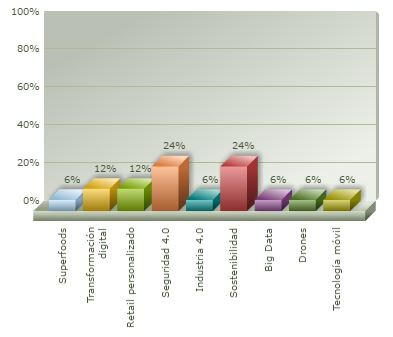 Los superfoods, la industria 4.0, el Big Data, los drones y la tecnología móvil son otros puntos a los que hay que dar importancia, pero no parecen tan prioritarios.