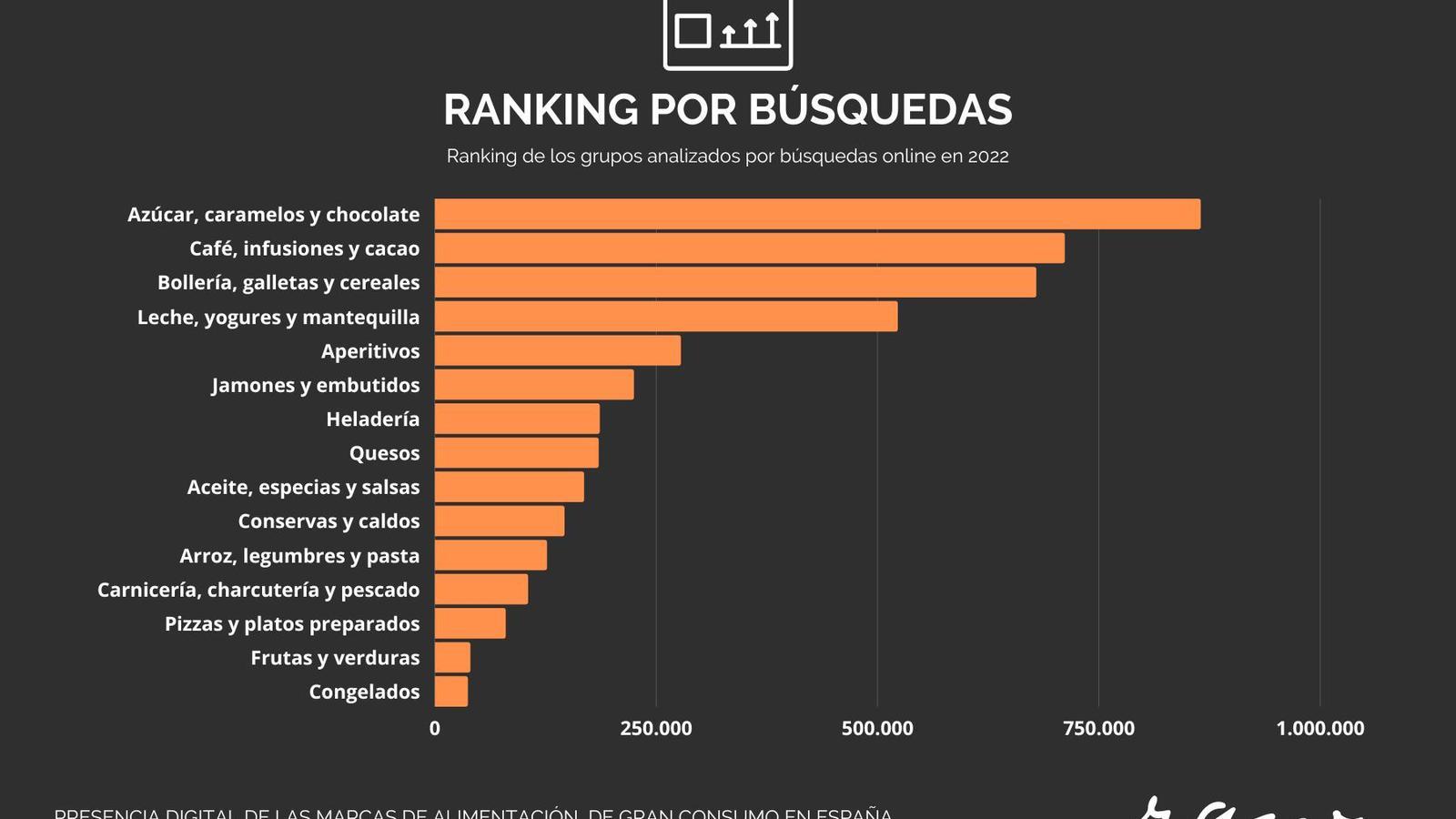 De todas las categorías de alimentos estudiadas, el cambio más significativo se muestra en las marcas de azúcares, caramelos y chocolate, cuyas búsquedas online han crecido un 32,66% en 2022, seguidas de las de cafés, infusiones y cacao. Este incremento las sitúa como las marcas de alimentación de gran consumo más buscadas online en España. "Estos datos están correlacionados con la demanda de las marcas, es decir, apuntan a que este tipo de marcas 'no saludables' está subiendo su facturación este 2022. En línea con esto, en el segundo trimestre del año, Coca-Cola ha aumentado sus ingresos un 42%", apunta Rebeca Toribio, CEO y fundadora de Agencia Raw.