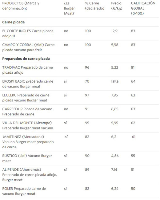 En general, eso sí, la OCU concluye que la carne picada y los preparados que se encuentran ahora son mejores que los de hace un par de años.
