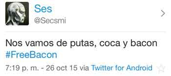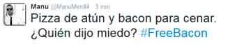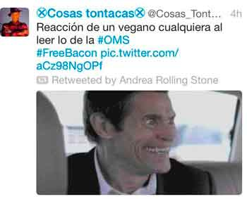 El hastag #FreeBacon y La OMS se han convertido en trending topics nacionales e internacionales ante el hecho de que salchichas, bacon y hamburguesas hayan entrado en el grupo 1 de sustancias cancerígenas, en el que ya aparecen el tabaco, el alcohol, el arsénico y el amianto.