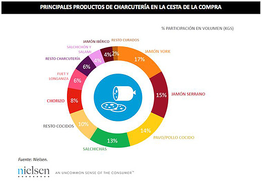 Volviendo a los datos de Nielsen, estos señalan que los consumidores redujeron en 2015 el consumo de productos procesados como las salchichas, que cayeron más de un 2% anual en el total mercado. En su lugar, éstos optaron por incorporar a su cesta de la compra productos que percibe como saludables y otros con un componente de indulgencia. De esta manera, el jamón ibérico creció el año pasado un 8,2%; fuet y longaniza, un 6,7%; y el pavo/pollo cocido, un 2,8%.