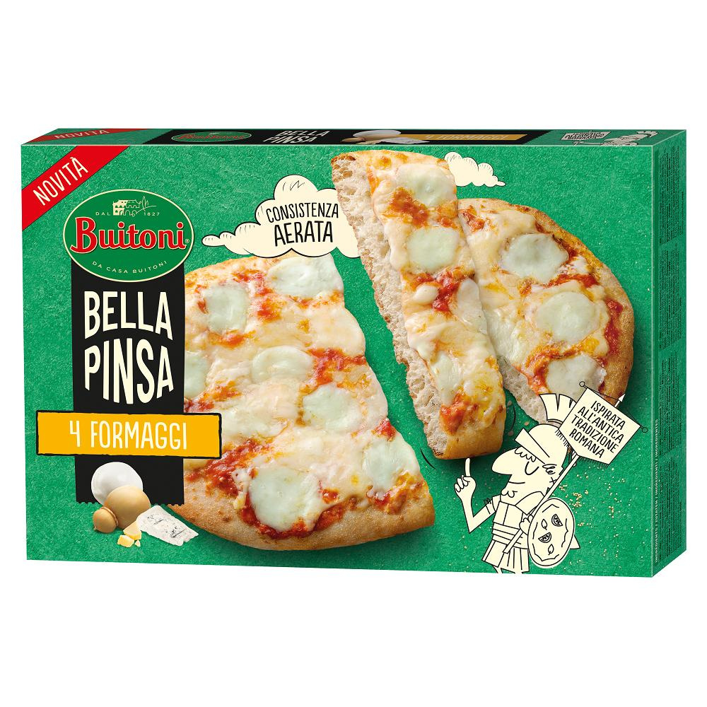 La marca presenta dos recetas: Bella Pinsa Prosciutto e Funghi, con prosciutto, mozzarella, scamorza ahumada y champiñones. Y Bella Pinsa 4 Formaggi, con mozarella, gorgonzola, ricota y provolone.