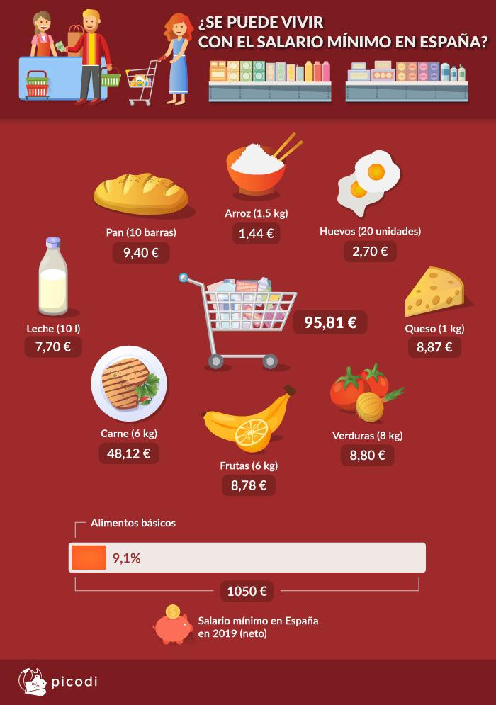 Sobrellevar la temida 'cuesta de enero' no es tan fácil para todos los bolsillos en España. Llega un periodo en el que las familias, tras los excesos navideños, deben ajustarse el cinturón y controlar al máximo los gastos. Teniendo en cuenta que, desde el pasado 1 de enero el nuevo salario mínimo interprofesional (SMI) ha aumentado a 900 euros, un estudio de Picodi, plataforma de cupones descuento, desvela que la cesta básica de alimentos representa sólo 9,1% del sueldo mínimo.