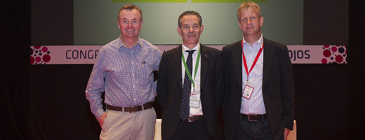El debate no dejó indiferente al millar de profesionales dedicados al sector de berries que se han dado cita en la onubense Casa Colón para asistir a la celebración del III Congreso Internacional de Frutos Rojos, organizado por Freshuelva. Fruit Logística, como patrocinador de la cita, invitó a dos ponentes de excepción: Drew Reynolds, director técnico y de Desarrollo de Negocio en la británica Total Produce, y Teunis Sikma, responsable de Calidad y Desarrollo de la cadena de suministro de la alemana Frutania. Con ambos tuvo la oportunidad de charlar GranConsumoTv.