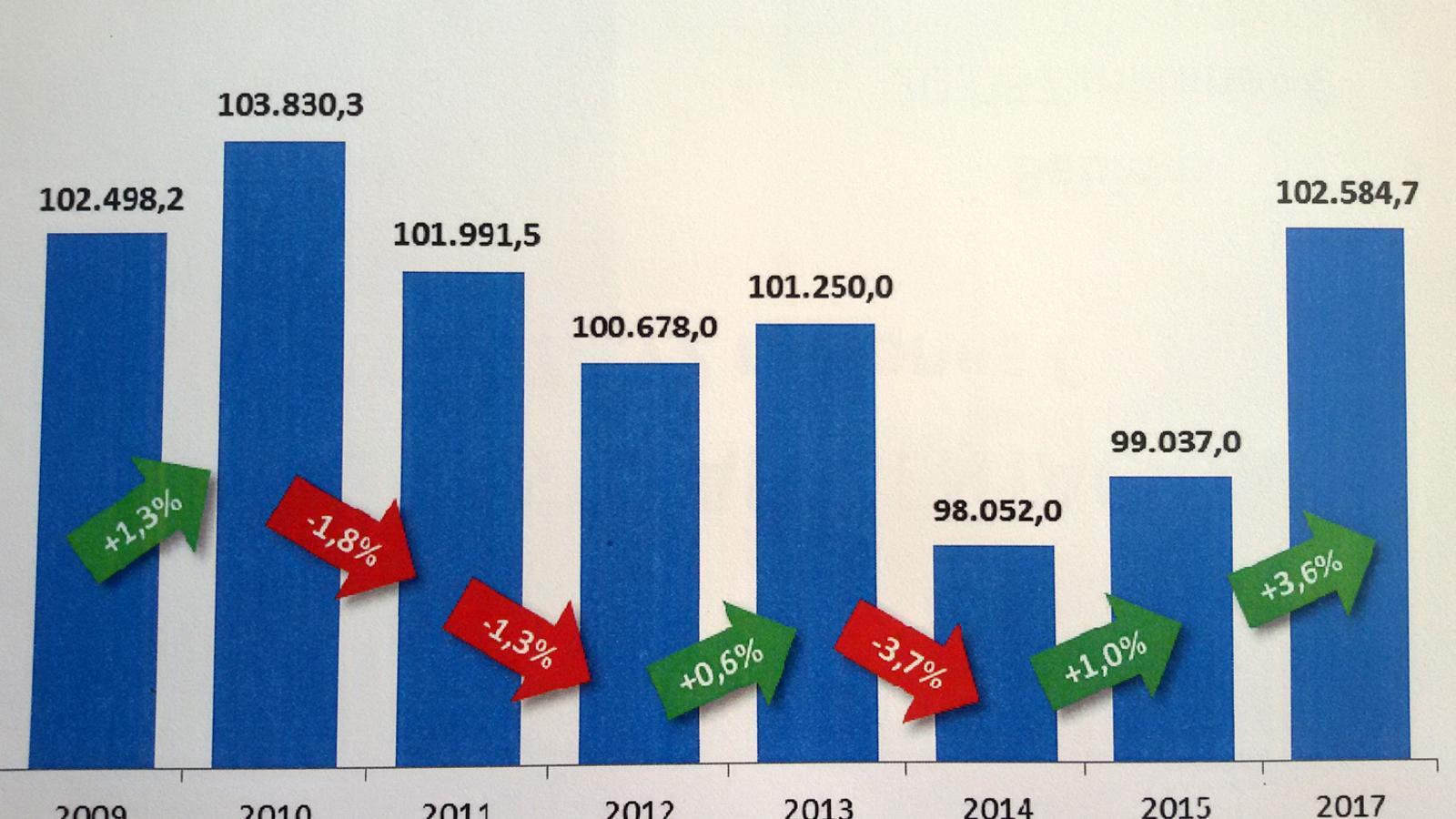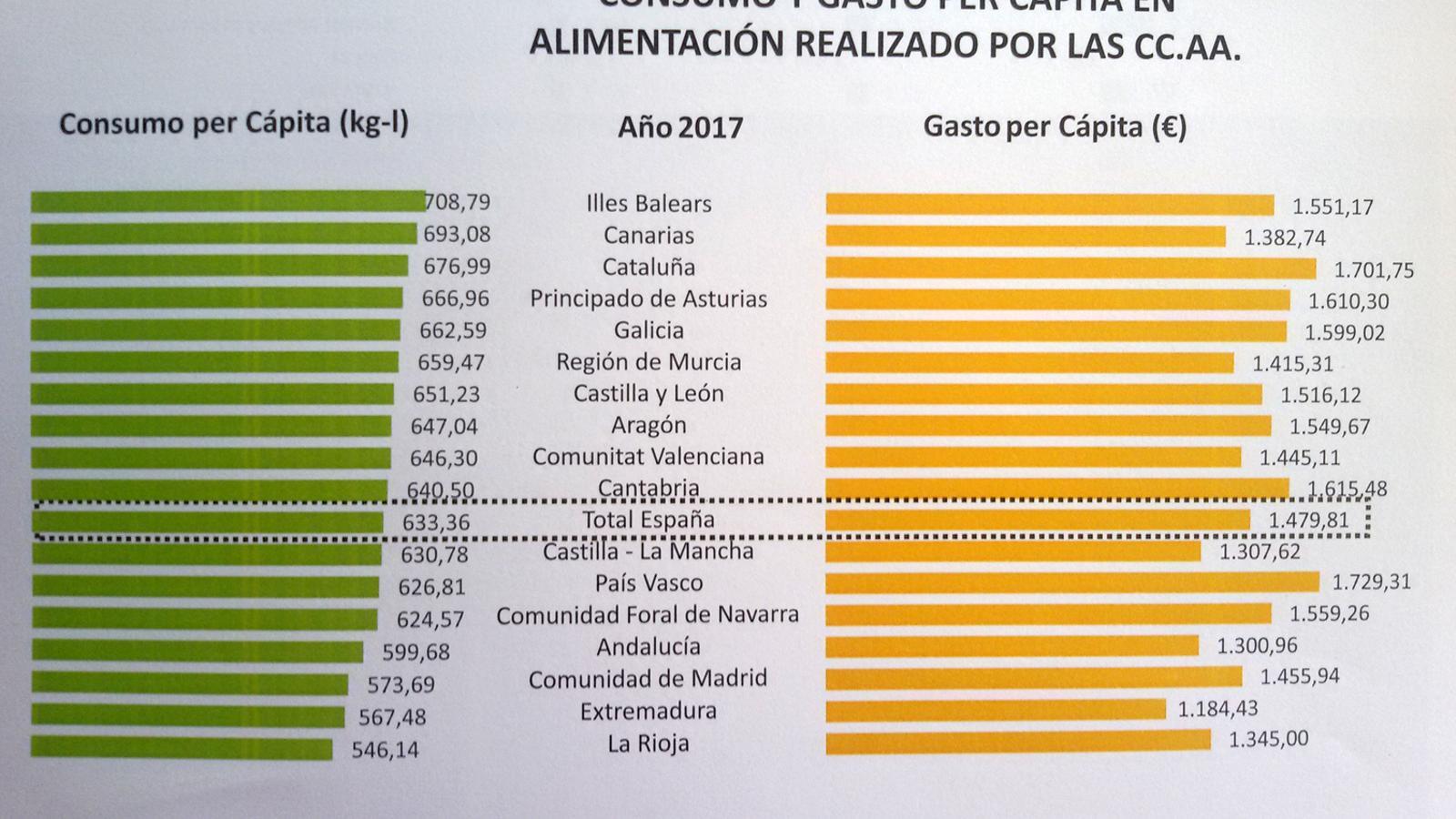 La cifra de gasto total supera el 3,6% al registrado en 2015. Sí, decimos 2015 porque el informe, que presenta datos de la evolución del consumo total desde 2009, exceptúa el año 2016, debido a un cambio de metodología en la cuantificación del consumo extradoméstico.