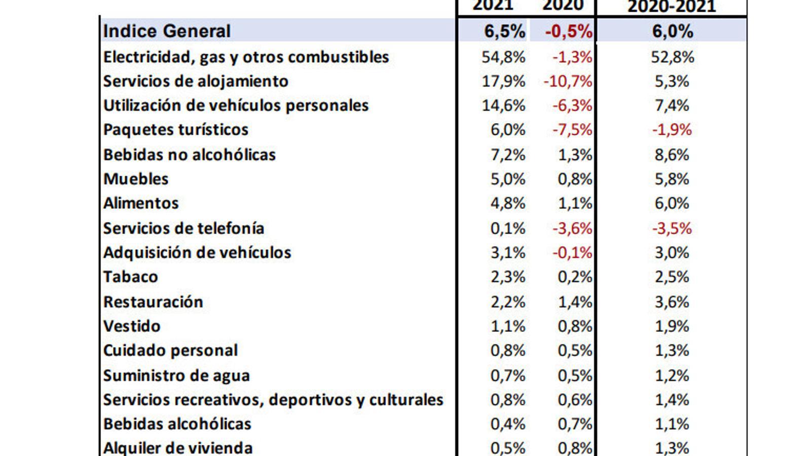 El aumento de precios en 2021 ha sido generalizado, y se nota en el incremento de los alimentos (4,8% frente al 1,1% en 2020) y las bebidas no alcohólicas (7,2% frente al 1,3% en 2020), según un análisis de EAE Business School. Si se extrae una media de productos y servicios básicos de los hogares españoles (electricidad, alquiler, alimentos, bebidas no alcohólicas, cuidado personal y suministro de agua), el precio es el 11,2% más caro tras el inicio de la pandemia de la Covid-19.