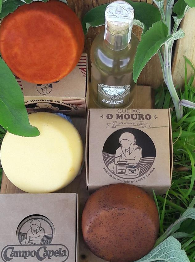 La Cooperativa Campo Capela reúne a 33 pequeños productores de leche, con un promedio de 15 vacas que son criadas en régimen semi-extensivo en los prados que rodean a la cooperativa. Además del requeixo, que es el producto estrella del sello Campo Capela, se produce queso fresco, tierno, semicurado y curado, así como nata y mantequilla. Uno de sus lotes estrella que proponen para San Valentín es el denominado Morriña, compuesto por tres quesos y una botella de su Licor de Suero de Requeixo.