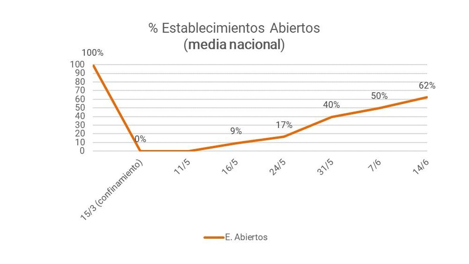 Las ventas no han acompañado a las aperturas: 6 puntos más de venta frente a los 12 en porcentaje de establecimientos que han abierto durante la última semana.