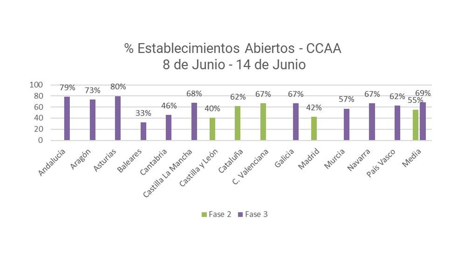 - Castilla y León, Murcia y País Vasco son las comunidades con un mayor retorno económico en las aperturas y normalización progresiva de los establecimientos.