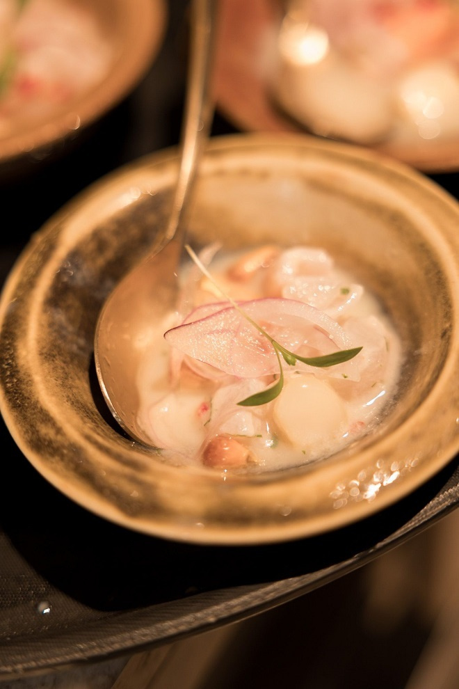 El menú ofrece una gran variedad de platos como una selección de ceviches de marisco, tiraditos y tatakis, anticuchos (brochetas marinadas a la parrilla de carbón) y platos de autor, como el bife Angosto Wagyu o Pato Laqueado.
