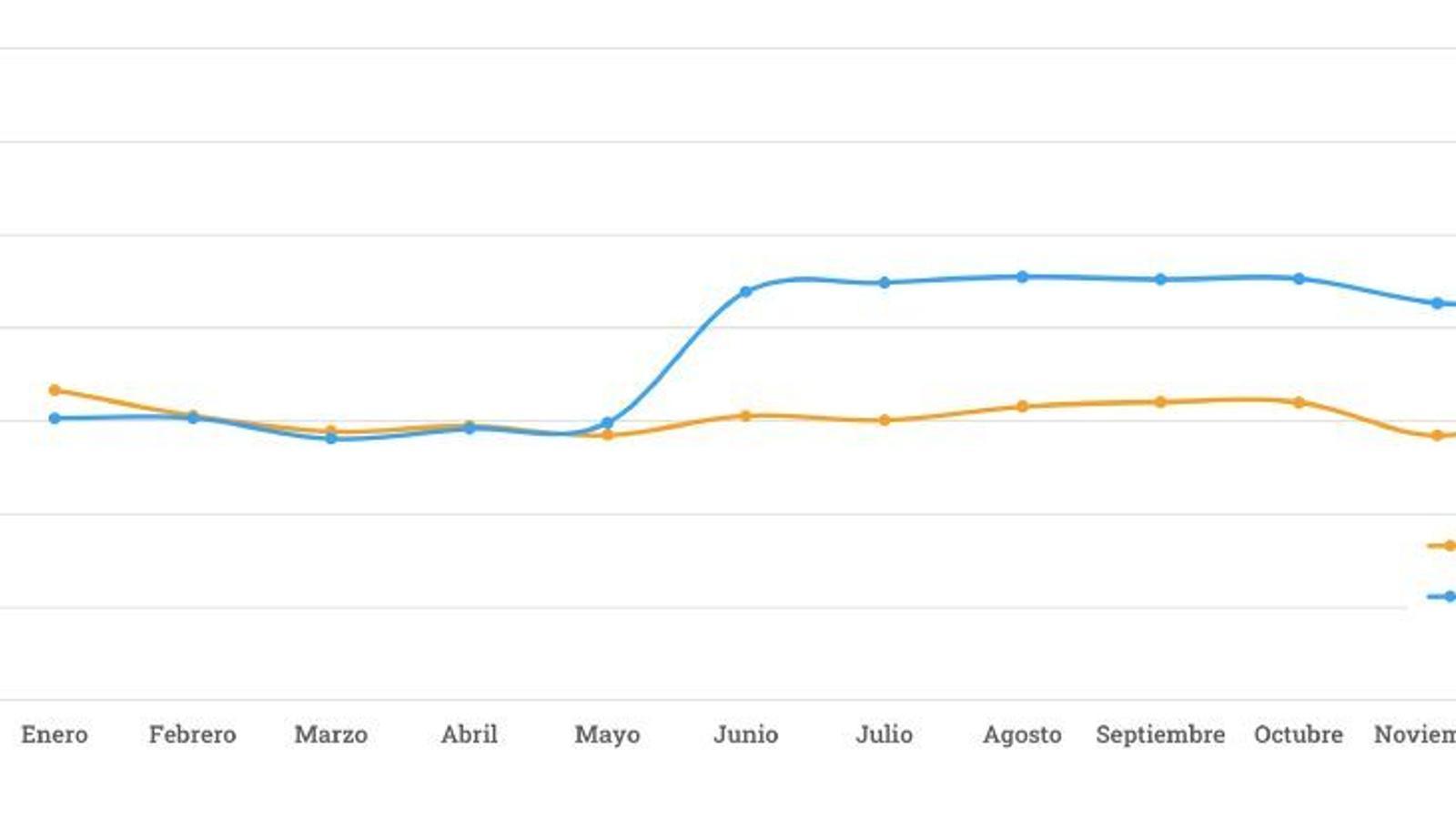 Si se analiza esta evolución de la ocupación media de los locales durante los dos últimos años, puede apreciarse que 2022 presenta una evolución más armónica que 2023, donde se detecta un gran crecimiento en junio que se mantiene hasta final de año. El mes donde se detecta una diferencia mayor de ocupación respecto a 2022 es julio, cuando los locales estuvieron un 21,10% más llenos que el mismo mes del año anterior.