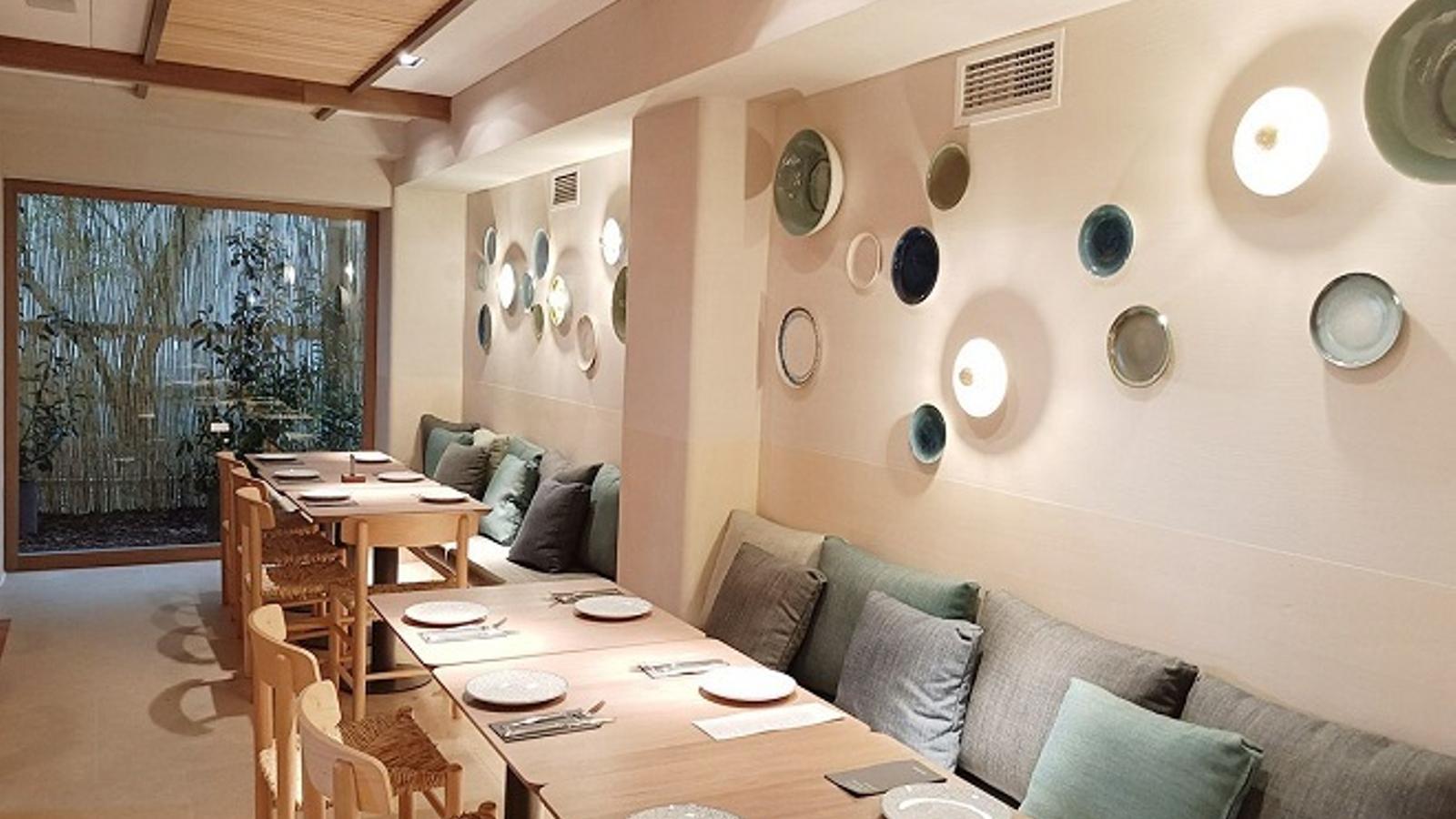 Así, en la planta a pie de calle, encontramos su barra de madera y trasbarra, realizada con huecos de obra, y sus amplios ventanales de luz natural. En su decoración destacan las paredes de alfombras, bancadas de madera y vegetación, y el centro del espacio, diferenciado por una alfombra de barro y mesas comunales. Mención especial merece su zona privada de mesa redonda para seis personas en un ambiente mediterráneo con puertas mallorquinas.
