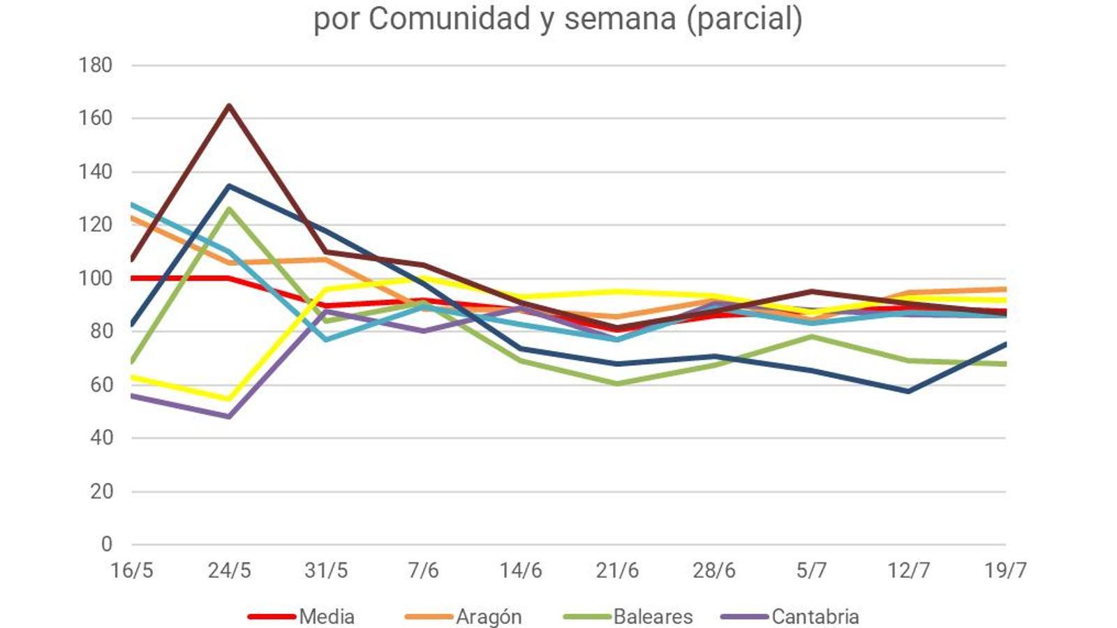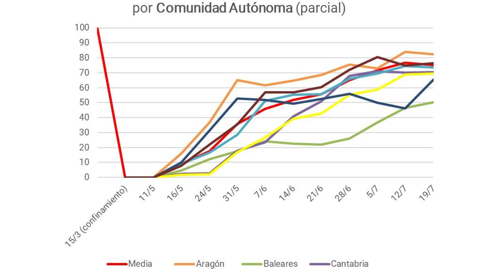 En las comunidades con mayor porcentaje de aperturas la evolución se estabiliza cuando alcanza el 85%.