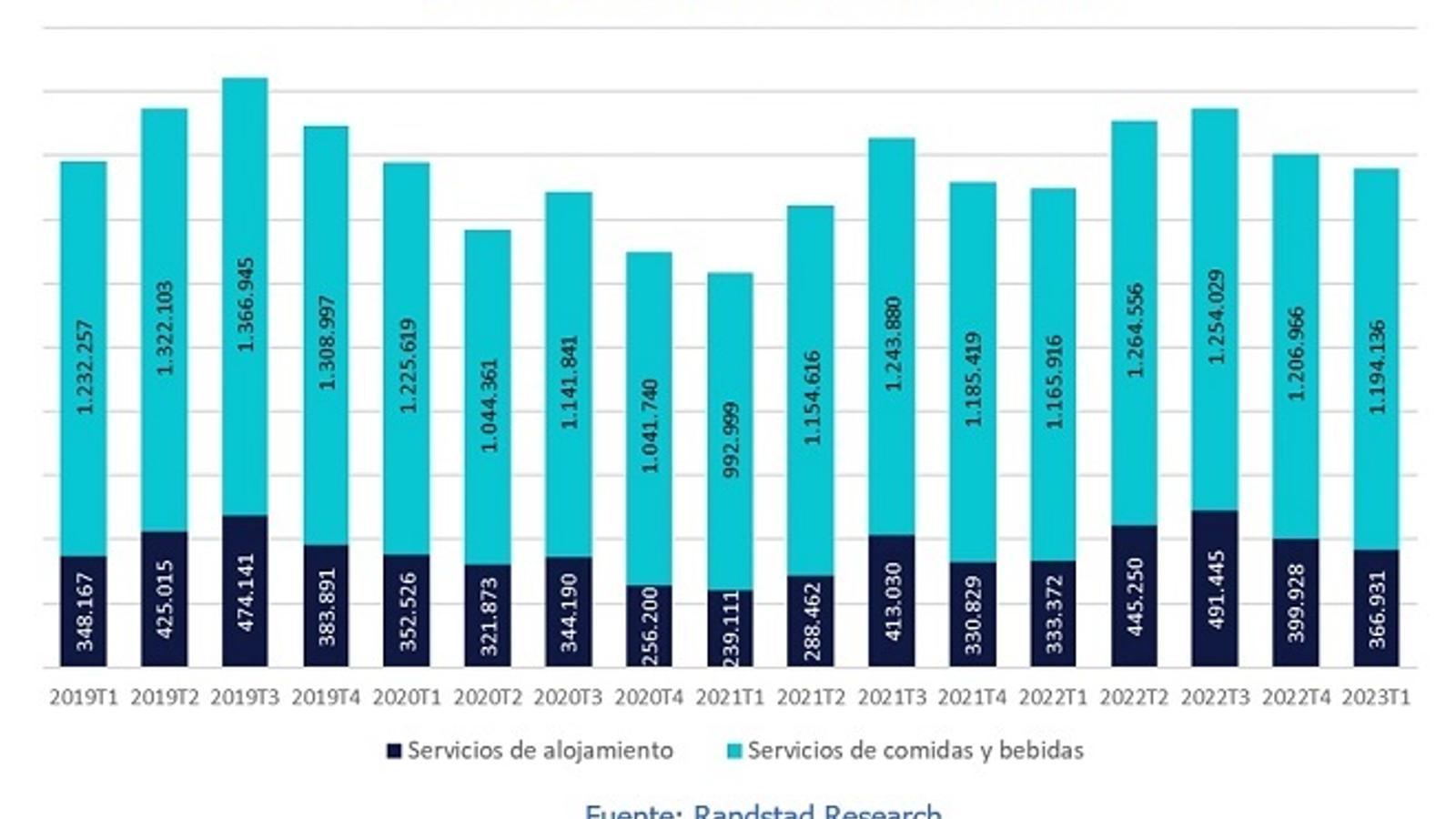 Así lo indica el informe 'Mercado de trabajo en el sector de hostelería' de Randstad, que indica también que en el primer trimestre de 2023, el empleo en este sector disminuyó en casi 46.000 personas respecto a los tres meses anteriores. Esta pérdida de empleo es más pronunciada en servicios de alojamiento, con 33.000 puestos de trabajo, debido a la estacionalidad del segmento.