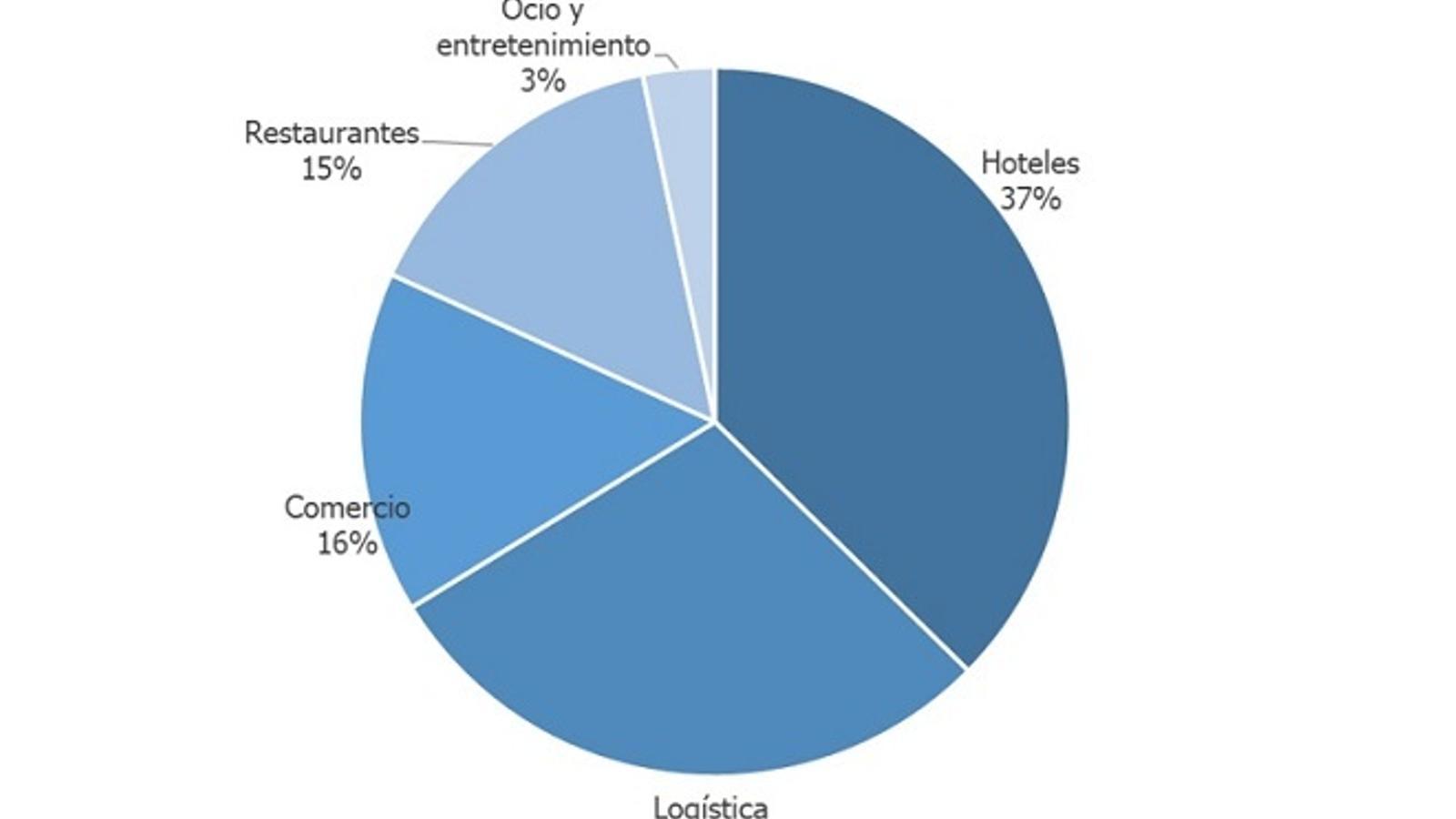Con respecto al año pasado, el sector que más crecerá será el de los hoteles (66,6%), seguido por el ocio y el entretenimiento (42,7%) y la restauración (37,3%). Ya registrando caídas se sitúa el comercio (-30,7%) y la logística (-27,3%).