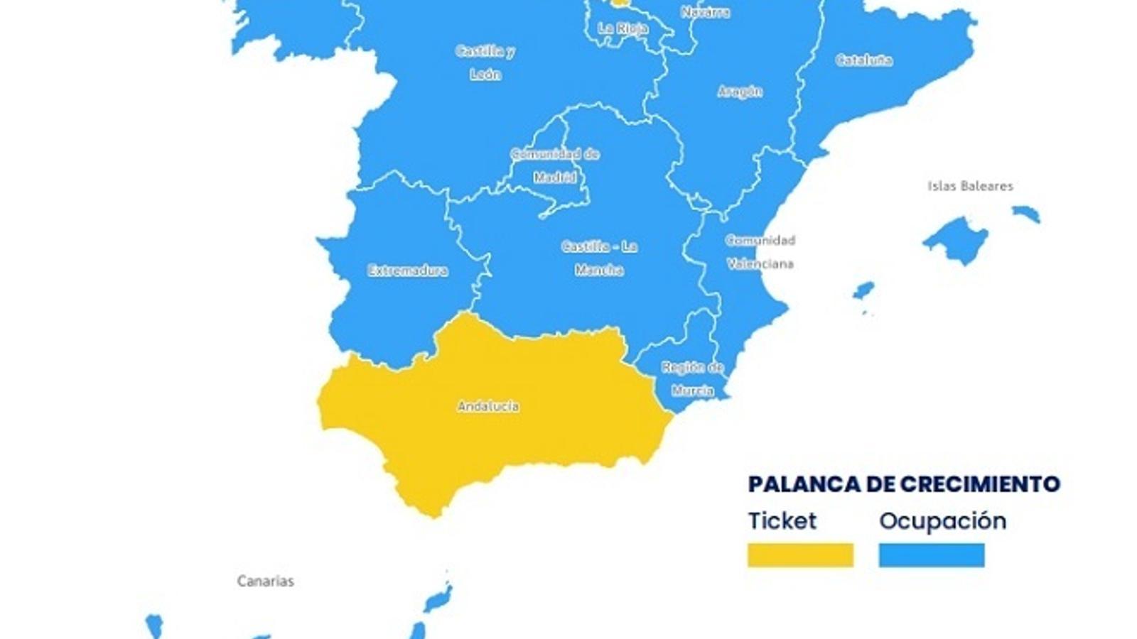 La ocupación ha sido el principal motor de crecimiento en la mayor parte del territorio, con la excepción de Andalucía y el País Vasco, donde el incremento en el ticket ha sido la principal palanca de crecimiento.