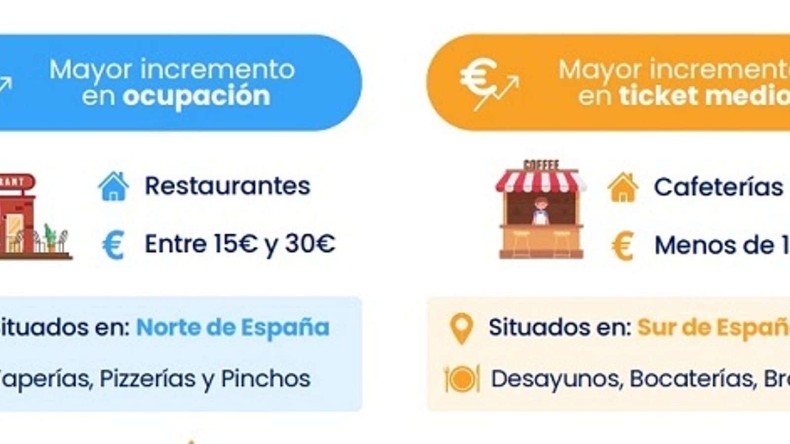 Las cafeterías registraron el mayor aumento en el gasto por comensal, debido en parte a su mayor margen para incrementar precios y al posible aumento en los costes de sus insumos. Por otro lado, los restaurantes, aunque subieron sus precios de forma más moderada, alcanzaron el mayor incremento en ocupación.