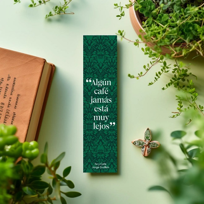 La ilustradora ha creado un marcapáginas con un verso de Jorge Guillén, poeta vallisoletano de la Generación del 27. El verso seleccionado, 'Algún café jamás está muy lejos', perteneciente al poema 'Fe y Café' de 1973, simboliza la conexión de Starbucks con la literatura local y resalta la importancia de la cultura y el arte en la identidad de Valladolid.