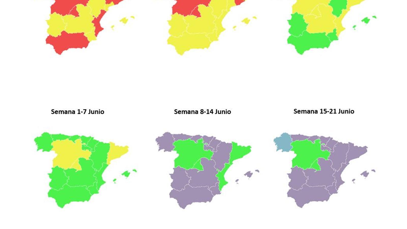En el mejor de los casos, la etapa de la desescalada tendrá una duración mínima en cada territorio de seis semanas, aproximadamente un mes y medio. Y la duración máxima, en el caso de que todo transcurra como hasta ahora, sería de ocho semanas para todo el territorio. De este modo, a finales de junio estaríamos en la nueva normalidad siempre y cuando la evolución de la epidemia esté controlada en todos los territorios.