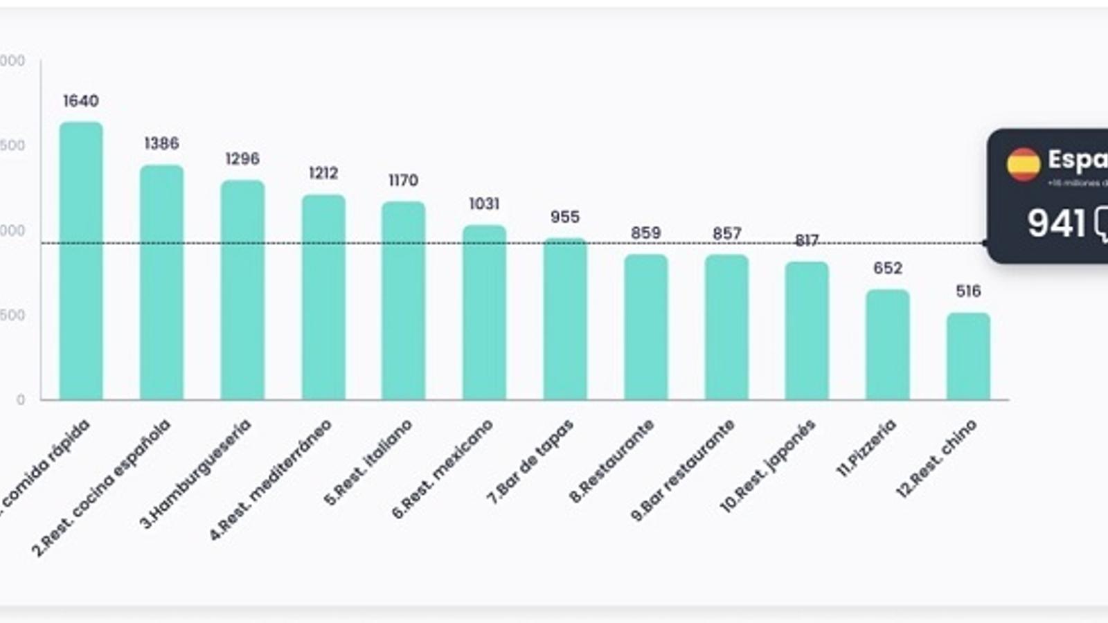 En cuanto al número de valoraciones nuevas conseguidas en un año, los locales de comida rápida, hamburgueserías y restaurantes italianos son los que más crecen: recogen entre 244 anuales y 288.