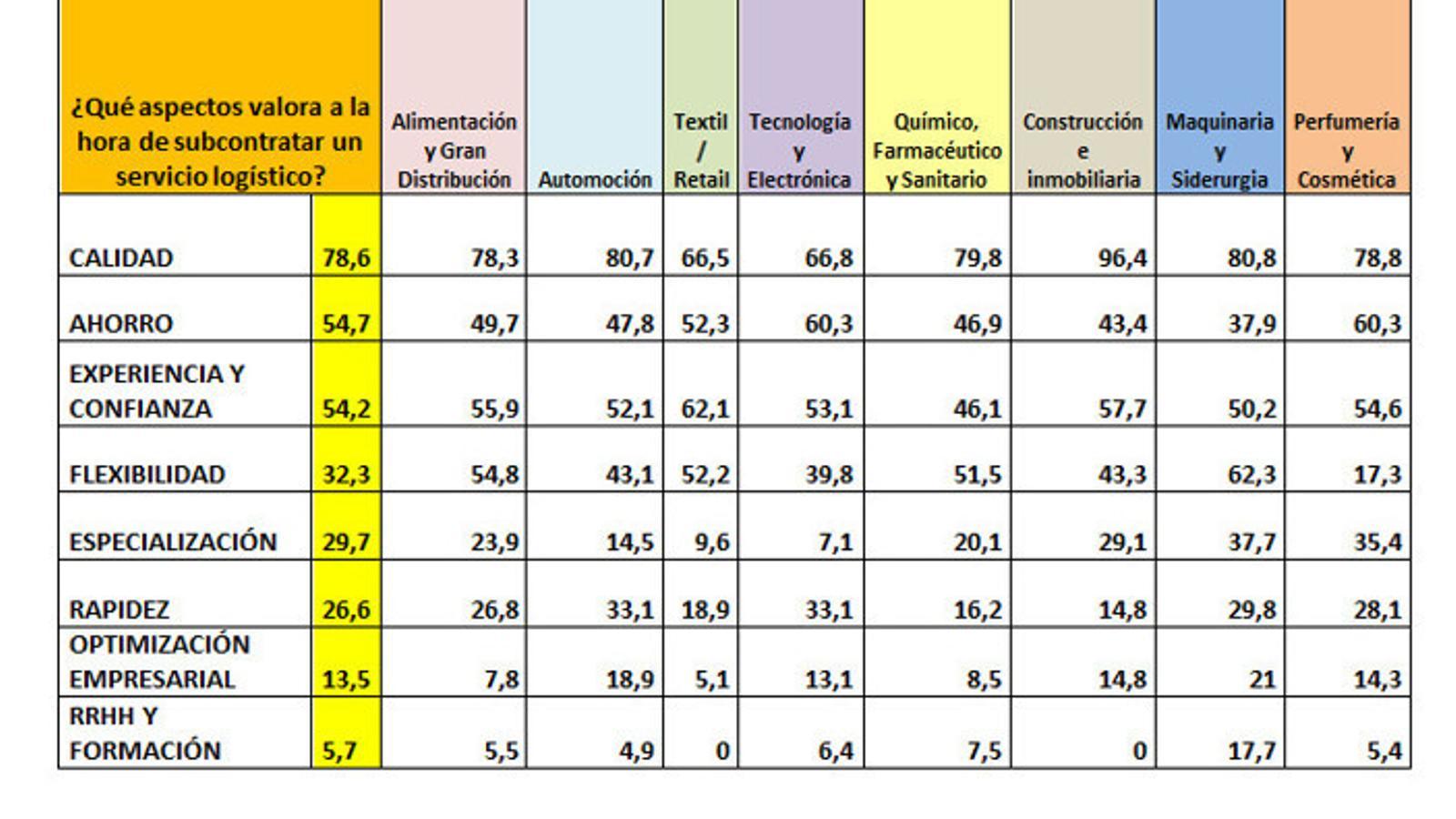 Asimismo, este análisis indica que la calidad sigue siendo el aspecto más valorado por los directores del sector logístico española la hora de subcontratar un servicio (78,6%). Sin embargo, los responsables del retail se queda atrás en esta apreciación.