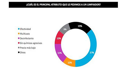 El informe llevado a cabo por Nielsen sobre cuidado del hogar apunta, no obstante, que el consumidor tiene en su mente varios beneficios cuando compra un producto de limpieza. Los más citados son eficacia (65%), que realmente desinfecten (56%), que sean fáciles de usar (43%), que sean versátiles (43%) y que no contengan químicos demasiado dañinos (38%).